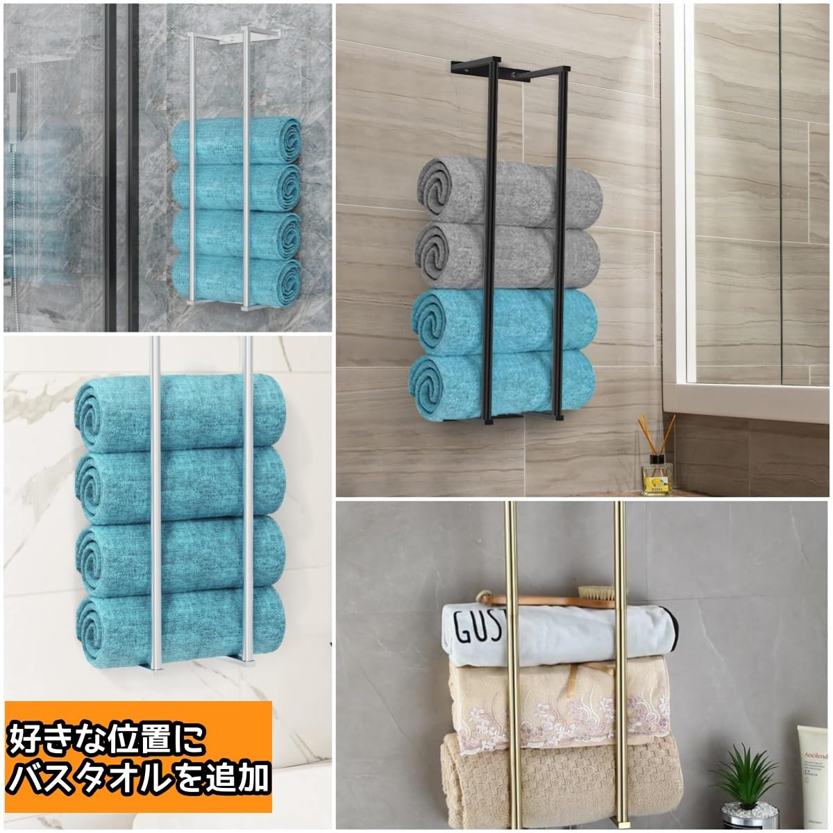 特徴: スペースの足りない小さな場所に適しており、浴室、シャワーの横、トイレの上のどこにでも設置でき、壁のスペースを最大限に活用し、タオルの収納スペースを最大限に活用します。 小さなバスルーム用のタオル収納です。 狭いスペースに最適で、アパート、コンドミニアム、寮の部屋、RV、キャンピングカー、キャビンで試してみてください。 バスルーム、マスターベッドルーム、スパ、サウナ、サロン、バー、ジム、瞑想室に最適で、スパの贅沢を作り出しながらストレージを最大化します。 このバスタオルラックは、バスタオルやタオルを