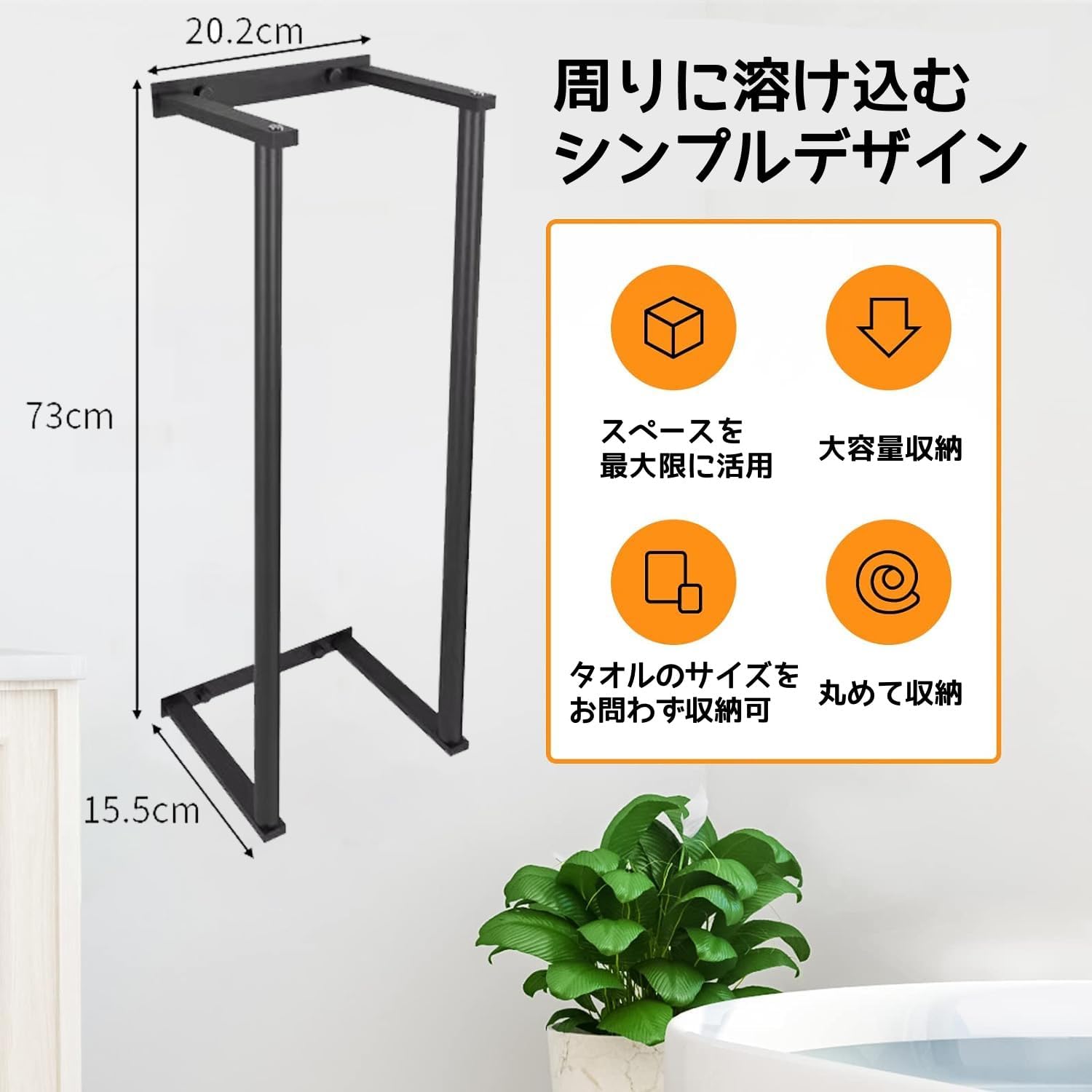 タオルラック 壁取り付け バスルームタオル収納 バスタオルラック 丸めて収納ランドリーラック バスタオル置き 折りたたみ大型タオル洗面タオル用 取り付け簡単 ブラック