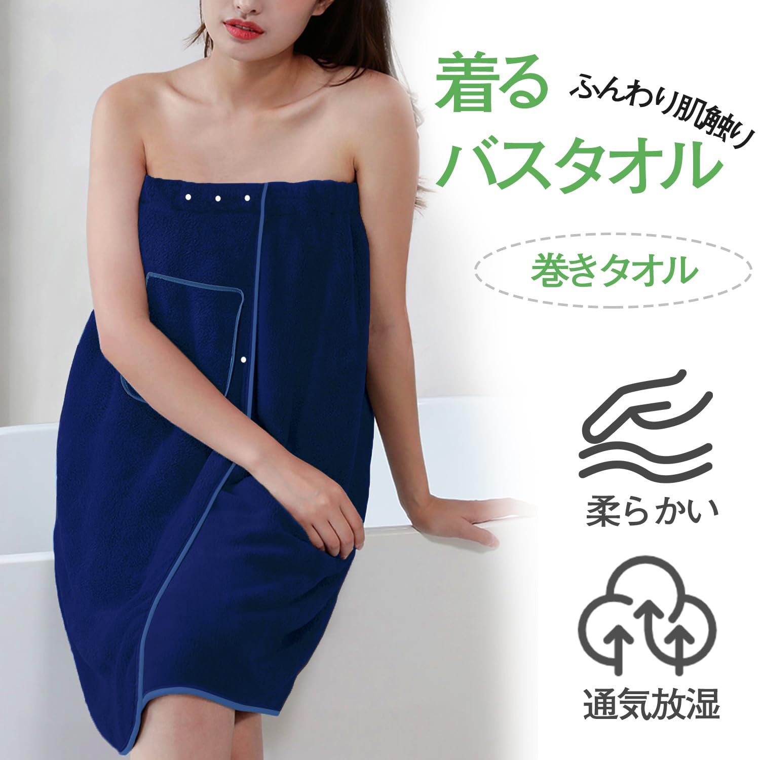 マイクロファイバー素材の特性により、驚いた吸水力を発揮します。体についた水分をしっかり吸収。