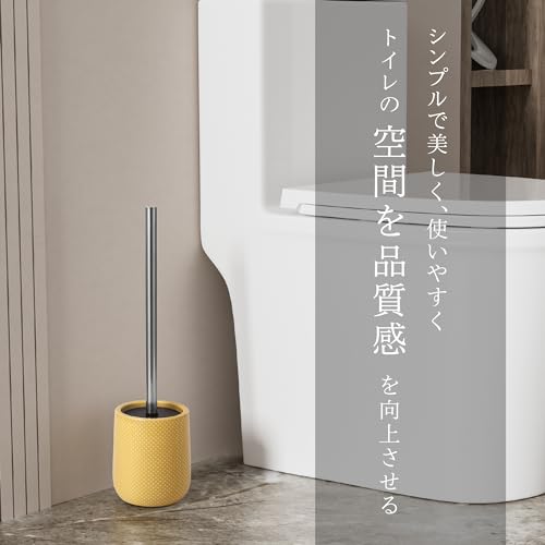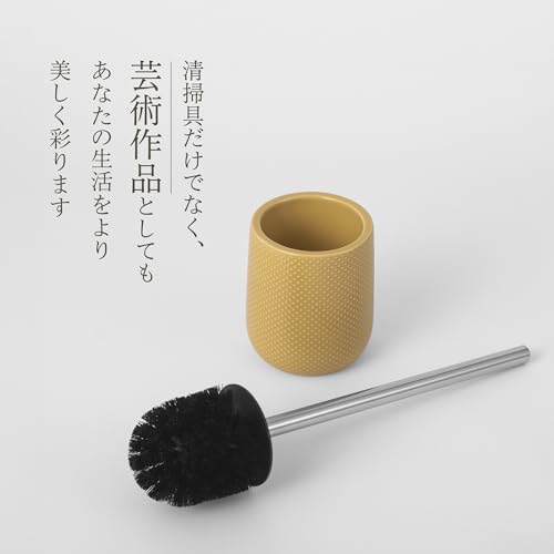 Really Powerful 陶器製トイレブラシホルダー付 おしゃれ トイレブラシ トイレ掃除 ブラシ トイレブラシとホルダーセット トイレクリーナー ブラシ - 長い筒状 黄色