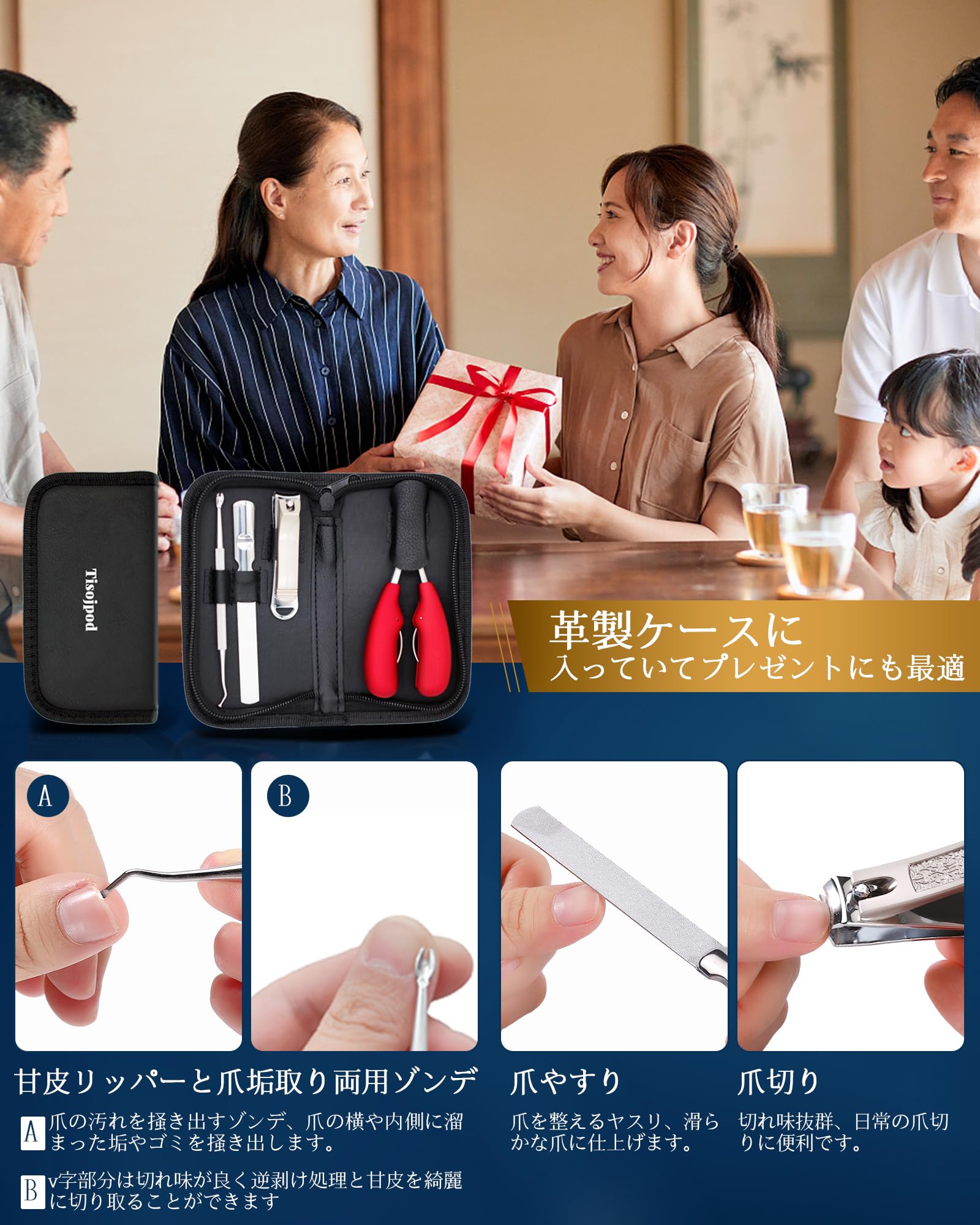 爪切り 湾曲刃「手首・腰の撓み軽減」高級 足用 両面切れ 高齢者 KINCOSY ステンレス刃物鋼 ガラス爪ヤスリ 金属収納ケース (黒色)