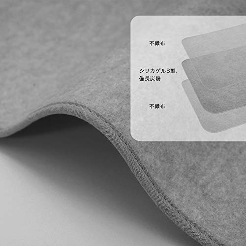 側生地不織布の間にシリカゲルB型をしっかり固定されます、更に消臭加工があります。耐摩擦、耐洗いとともに吸湿性も実現できます。ジメジメから救われます。