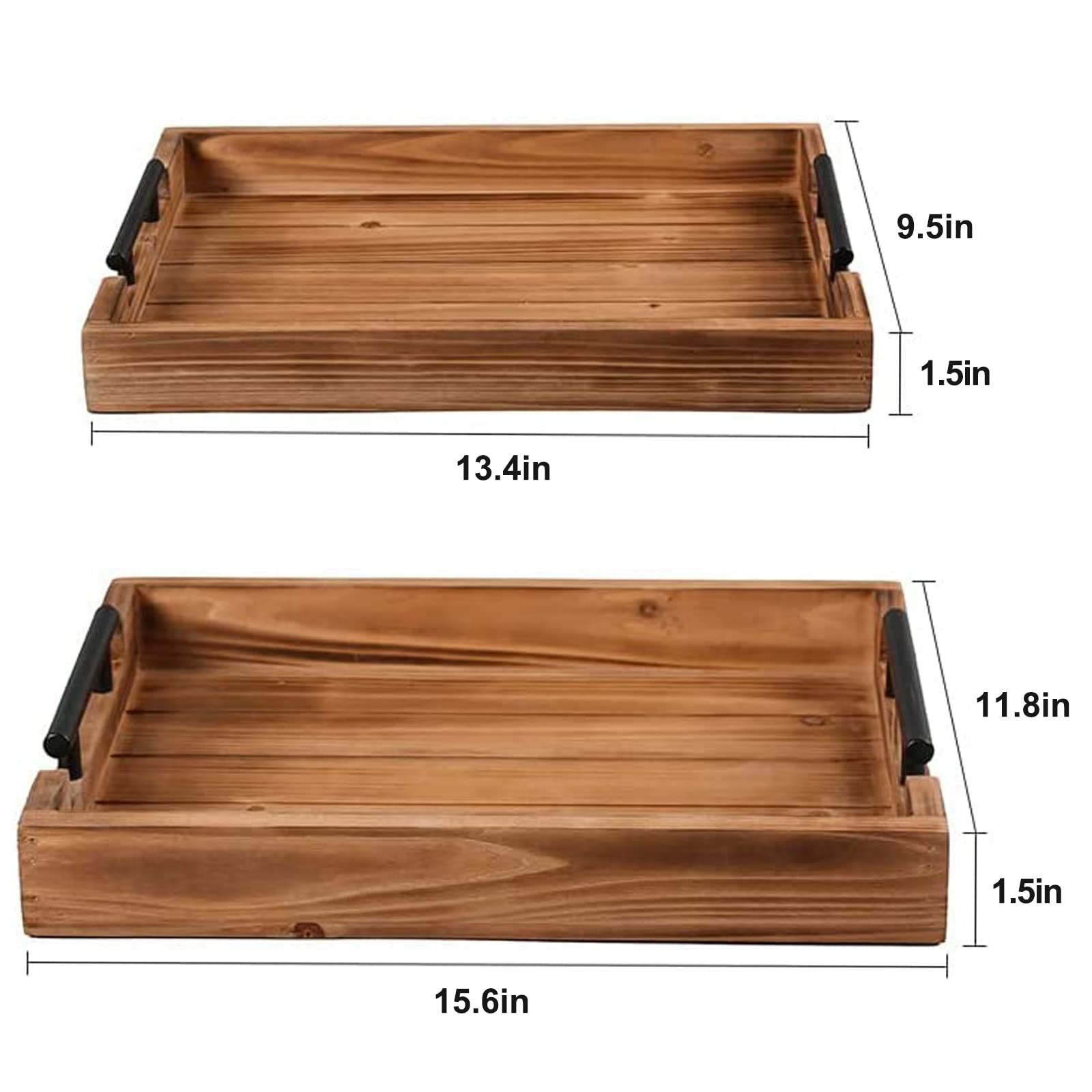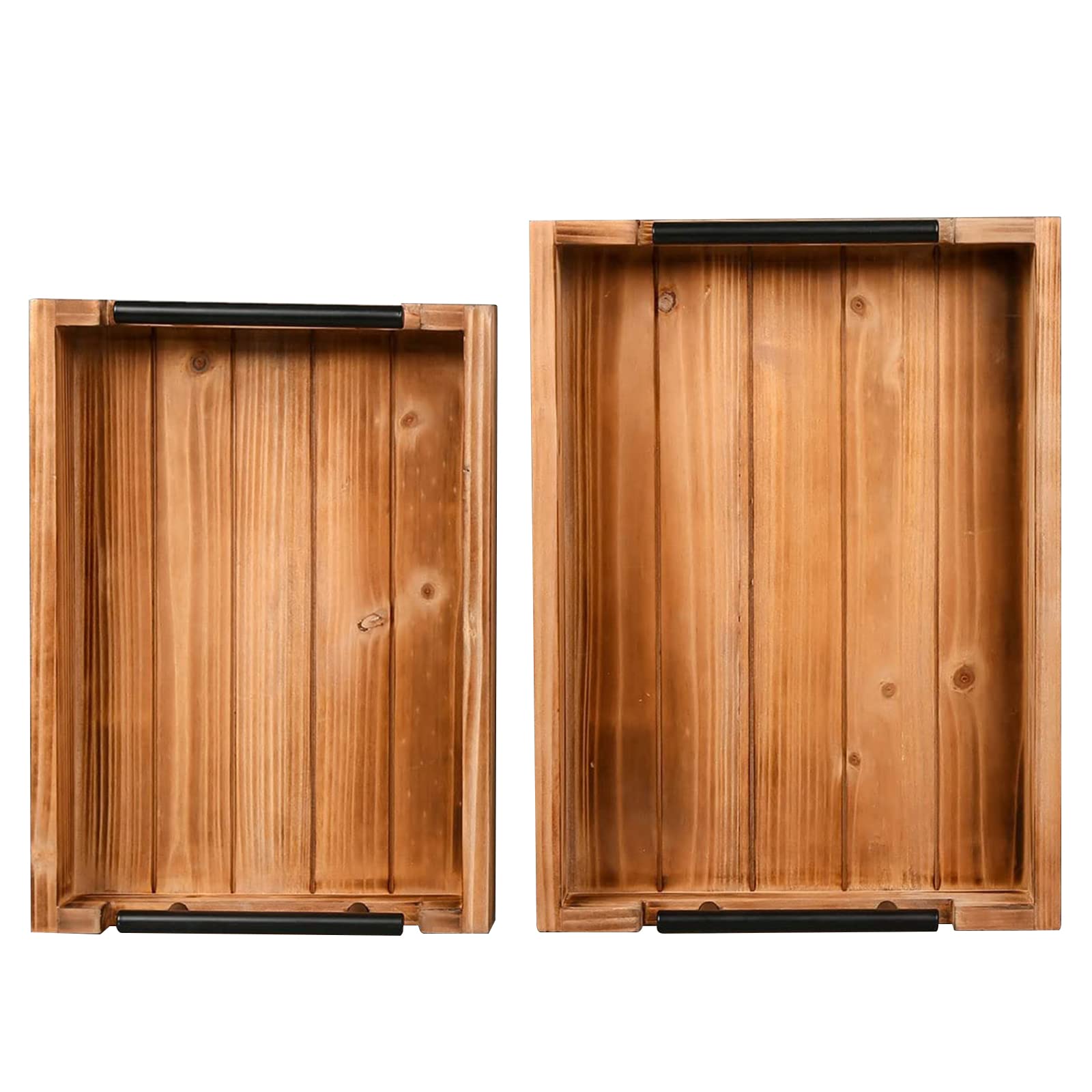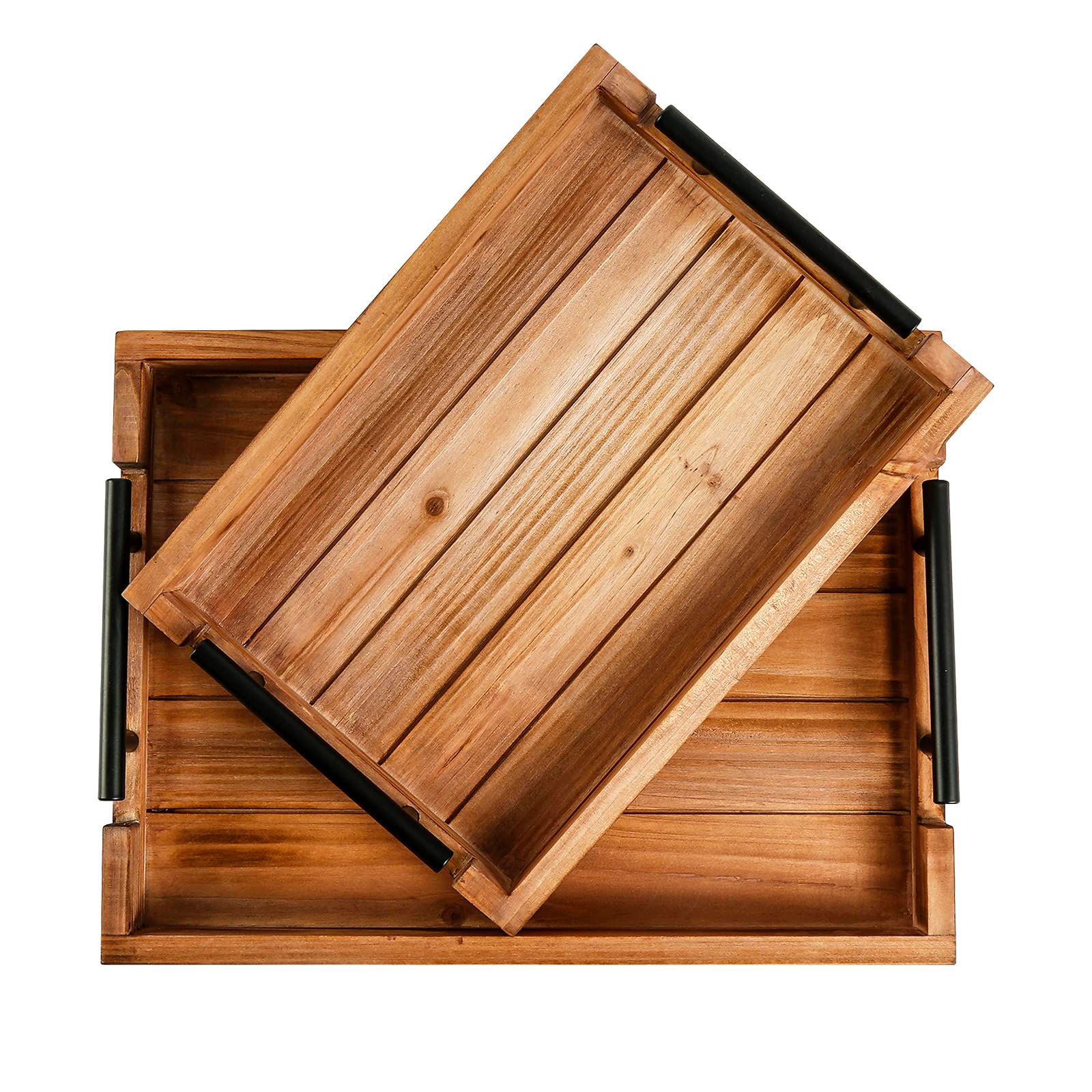 Juleduo 2ピース 装飾 ネスト型 ヴィンテージ 木製サービングトレイセット 食事 朝食 パーティー キッチン オットマン ティーコーヒーテーブル ホームデコ 大きな装飾サービングトレイセット