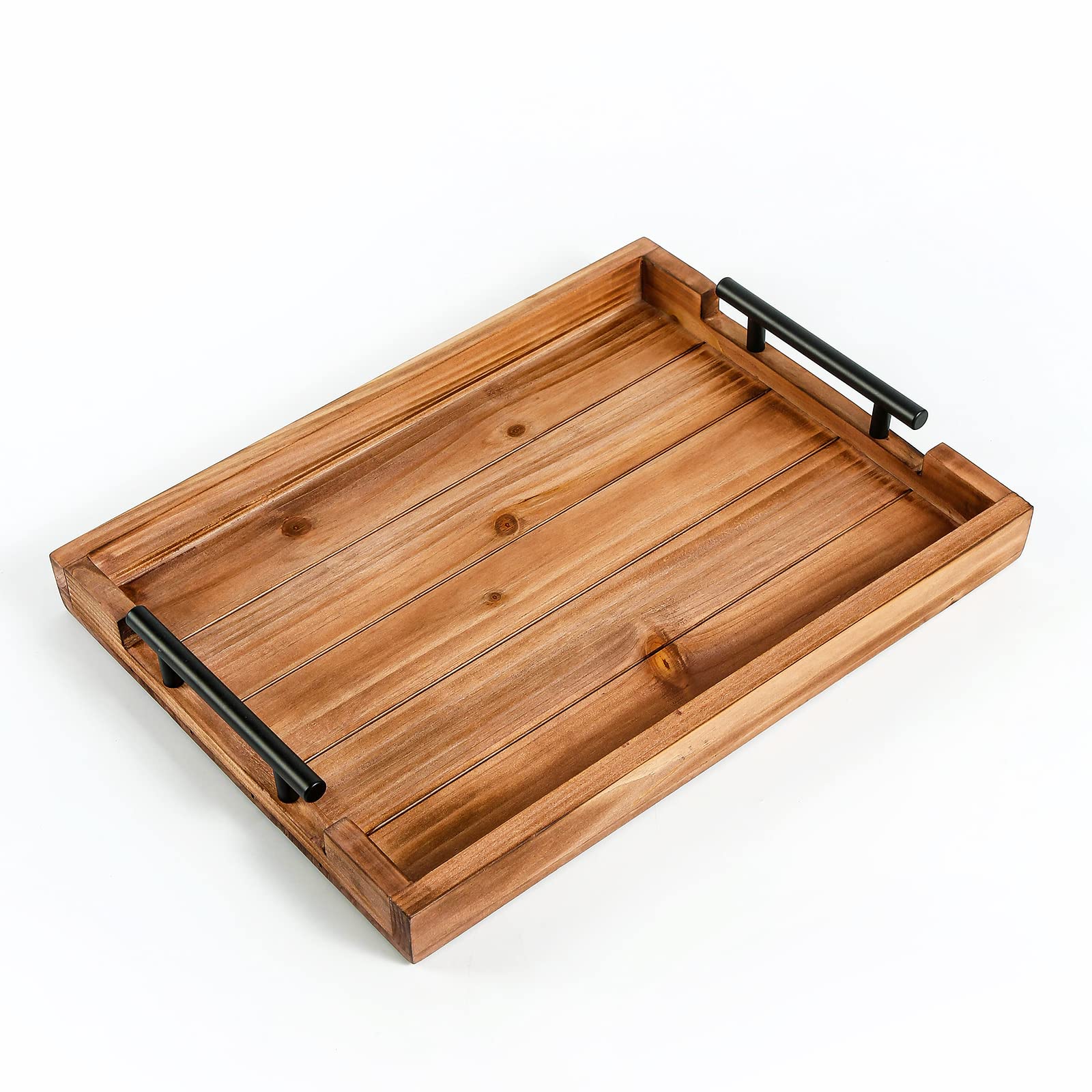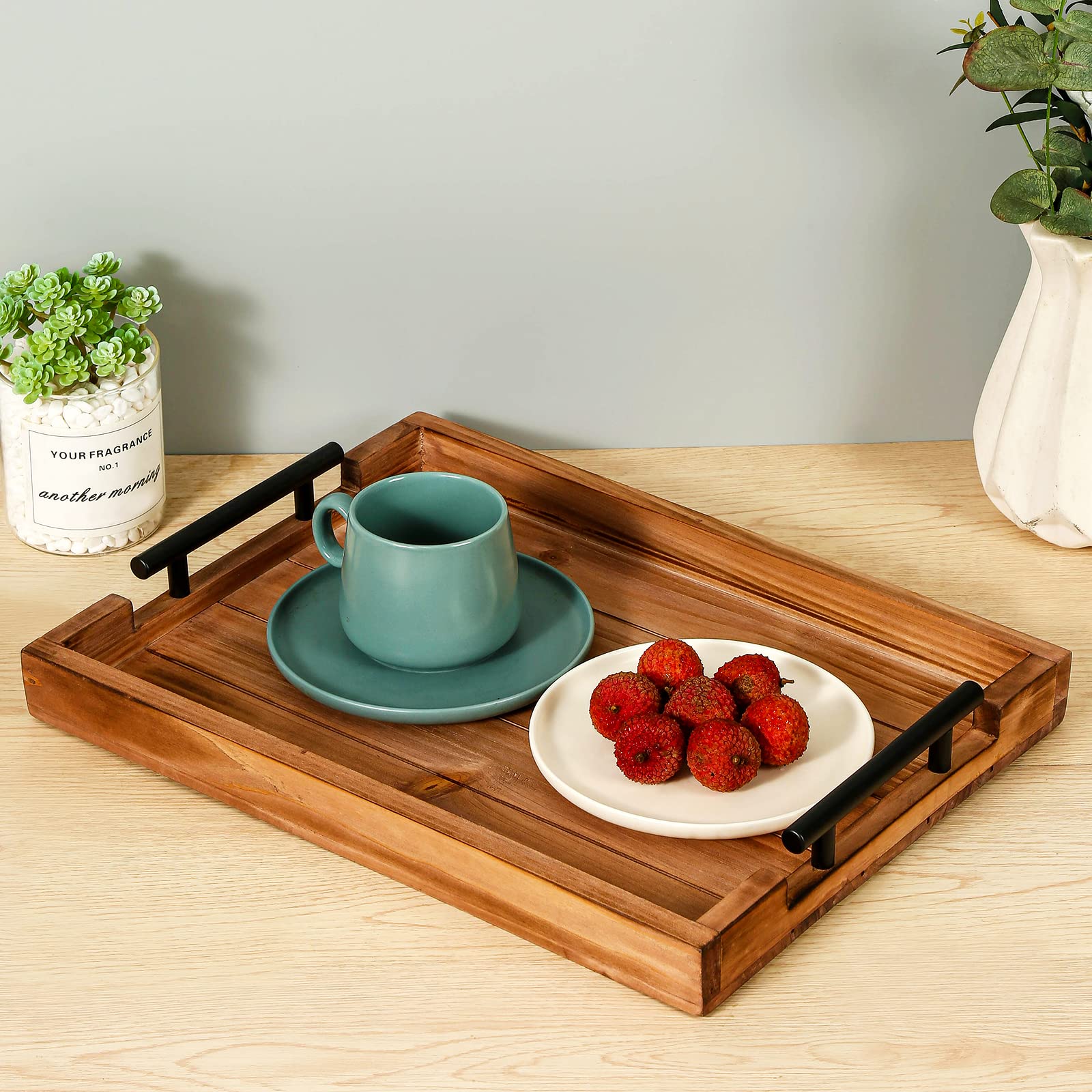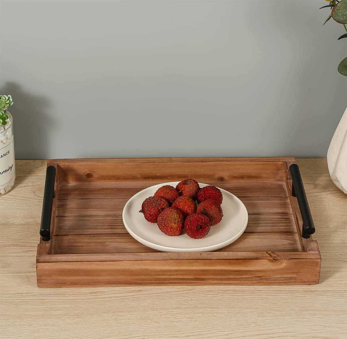 Juleduo 2ピース 装飾 ネスト型 ヴィンテージ 木製サービングトレイセット 食事 朝食 パーティー キッチン オットマン ティーコーヒーテーブル ホームデコ 大きな装飾サービングトレイセット