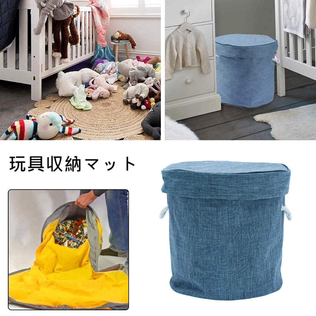 【最新デザイン】ブロック 収納 マット おもちゃ収納袋 玩具 ブロック片づけ 収納マット 生活小物 洗濯可能 お出かけに便利 多用途 お片付け簡単 超大 誕生日プレゼント (ネイビー1.5M)