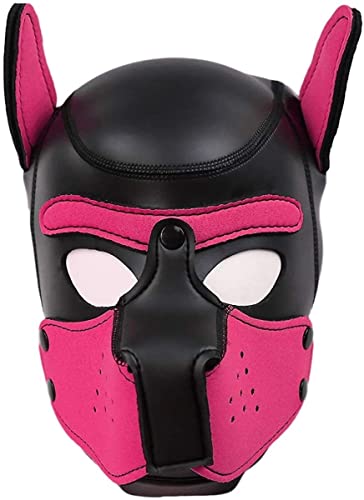 犬の頭のマスク子犬のフードネオプレンフルフェイスマスク、ハロウィンマスク、クリスマスマスク、パーティーコスチューム (ピンク/L)