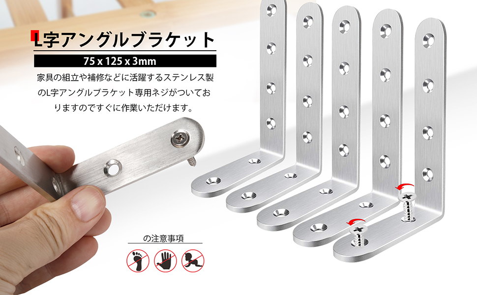 サイズ:アングルブラケット:125*75*3mm、厚さ:2.5cm。ネジの長さ:長2.5cm、短1.5cm。アンカー:2.7cm。