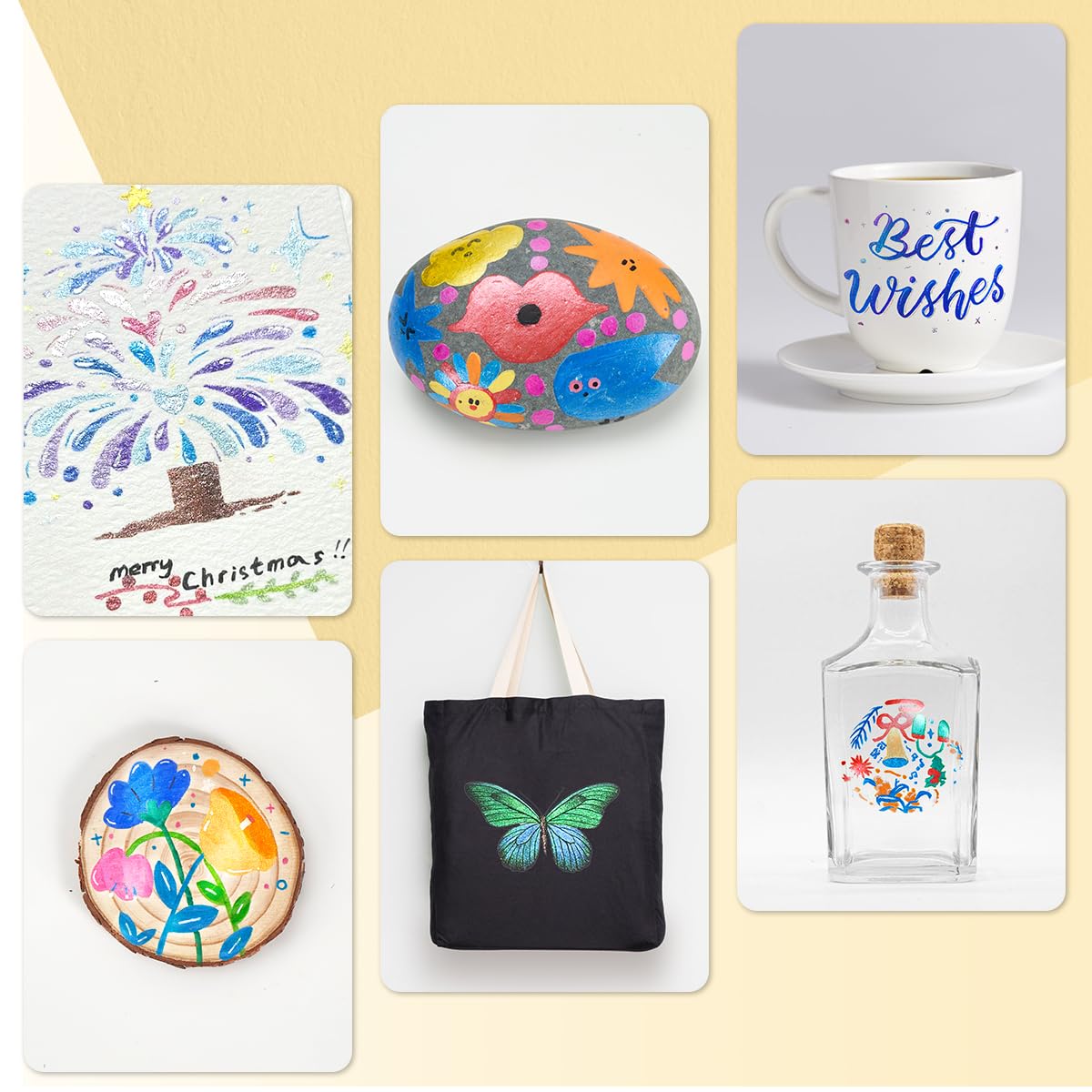 12本の超高輝度メタリックアクリルマーカー、極細0.7mmアクリルペイントペン、岩絵、陶芸、木材、キャンバス、プラスチック、ガラス、石、書道、カード作成、DIYクラフト用