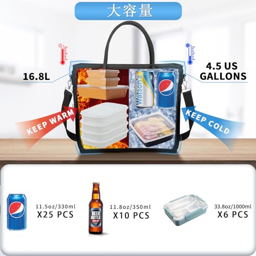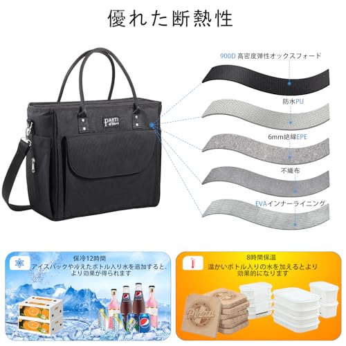 保温午餐包 保冷便当包 大 17升 折叠式 野餐篮 软质 保冷箱 午餐盒 绝缘 防水 防漏防滑 简约 便当袋,黑色,中号运动 工作 购物 户外 钓鱼 旅行 沙滩 可挂在黑色行李上