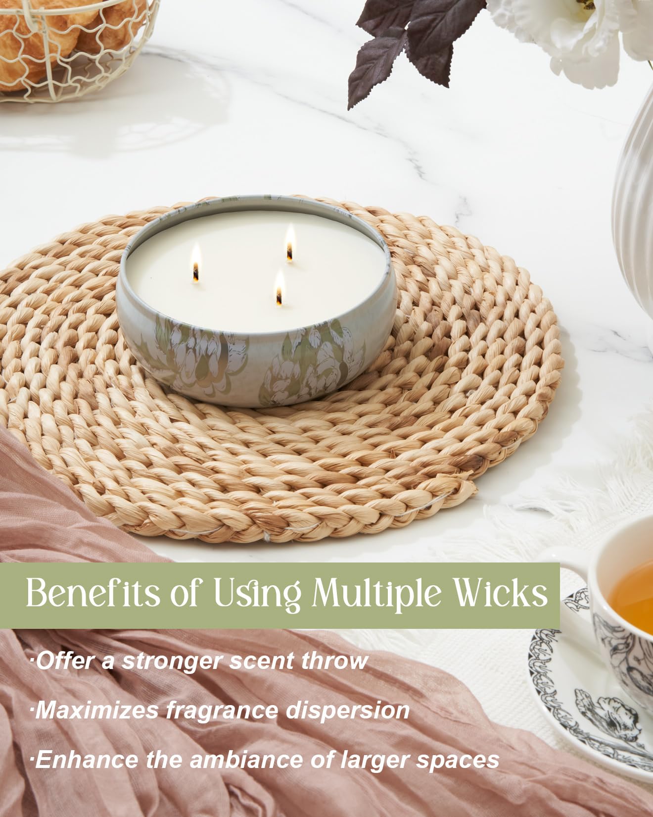 M&SENSE 3芯ソイキャンドル ホーム用 香り付き 野生の蘭の香りのアロマセラピーキャンドル ストレス解消用 340g 40時間の燃焼時間 高香りのキャンドル ギフト
