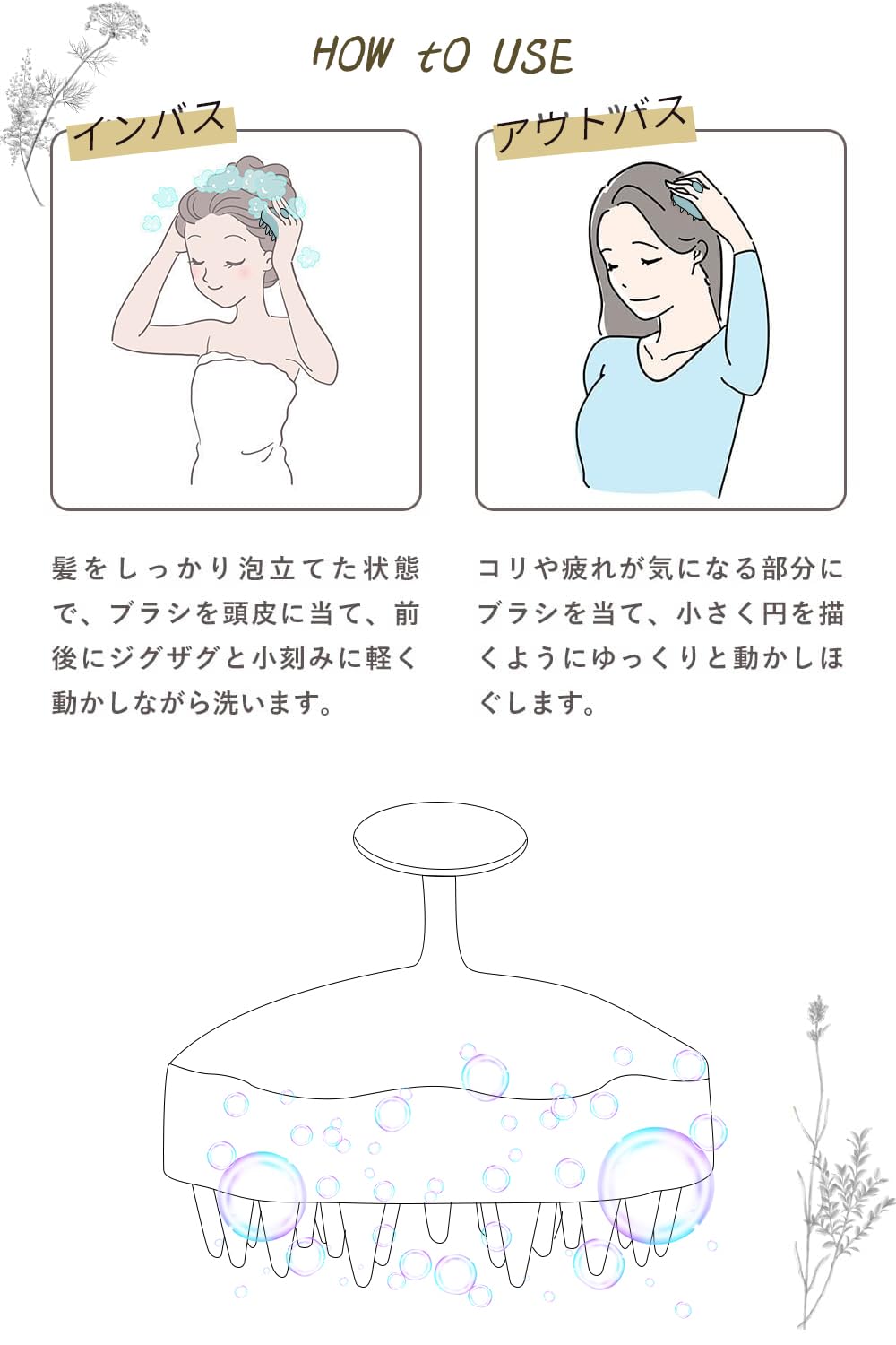 ✅【しっかり清潔&リラックス】: 少量のシャンプーで豊かな泡を作ります。あかと角質を除くように役立って、頭の痒さを減らします。頭部をリラックスができます。ブラシの葉は、髪の根元までしっかり接触することによって、頭皮の中の垢をしっかり清潔效果と発毛を促すことが実現できます。