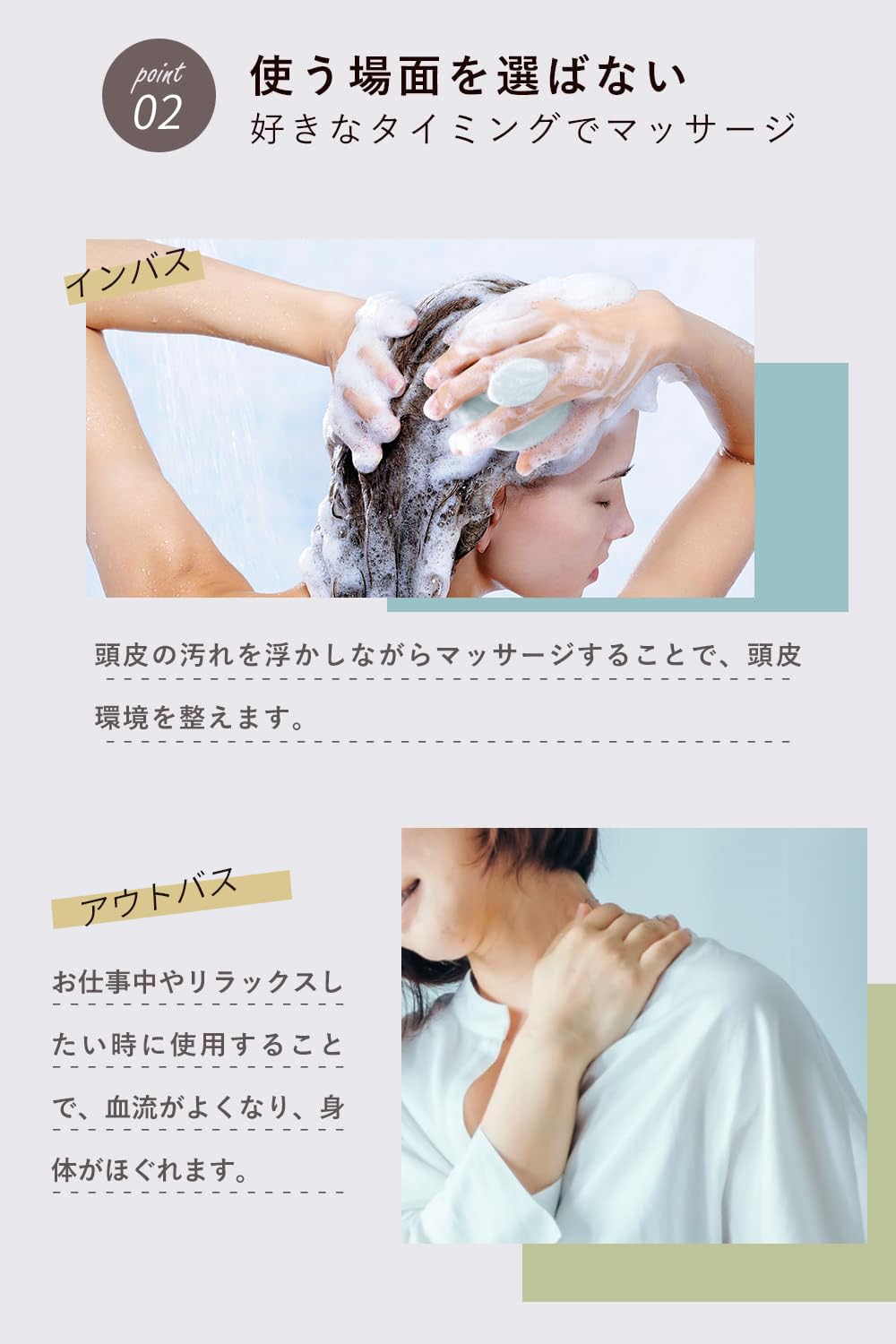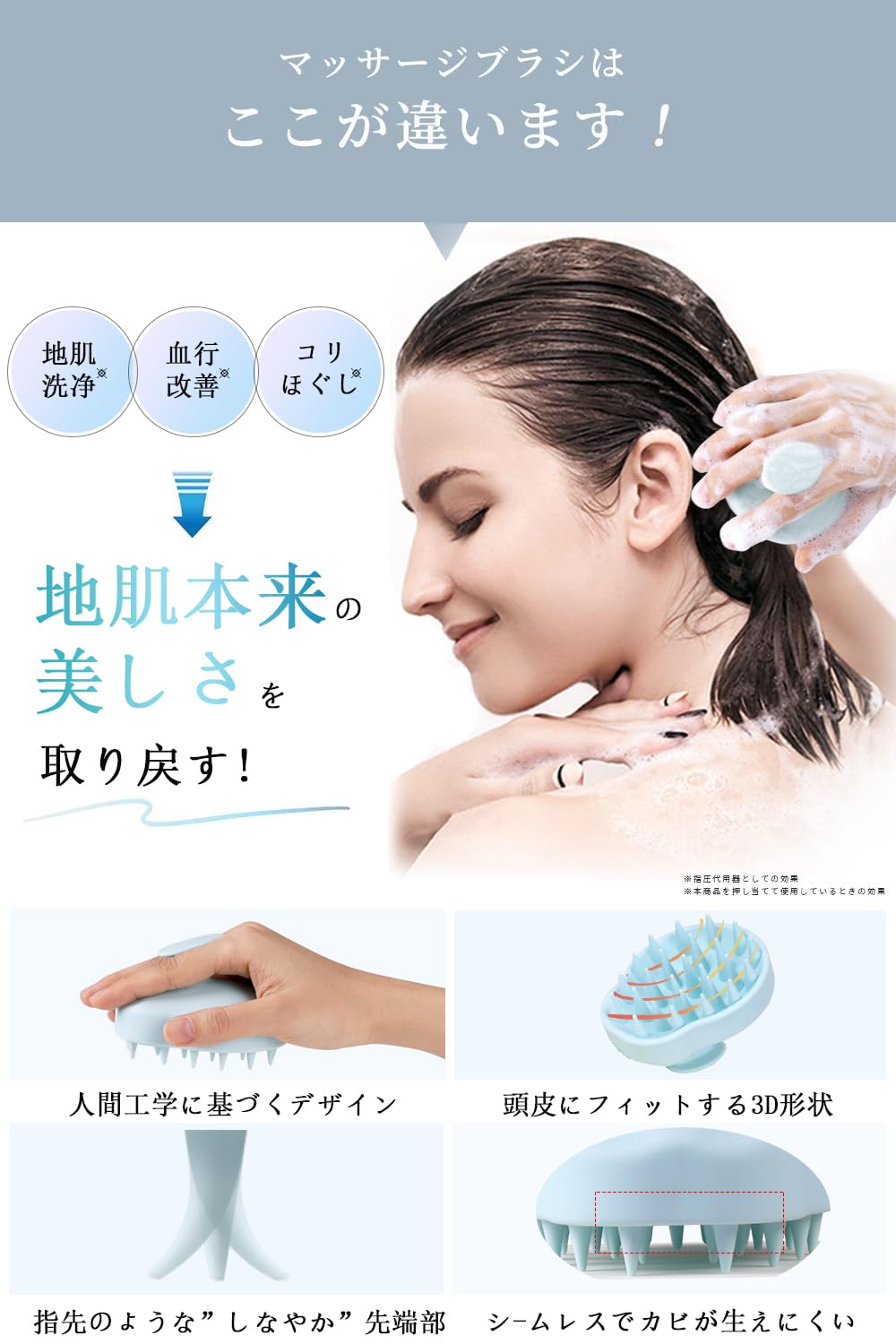 ✅【人間工学に基づく設計】滑りやすいシャンプー中でも握力いらずで握りやすい「形」。内部は頭皮に沿う「3Dカーブ」形状でピッタリフィット。
