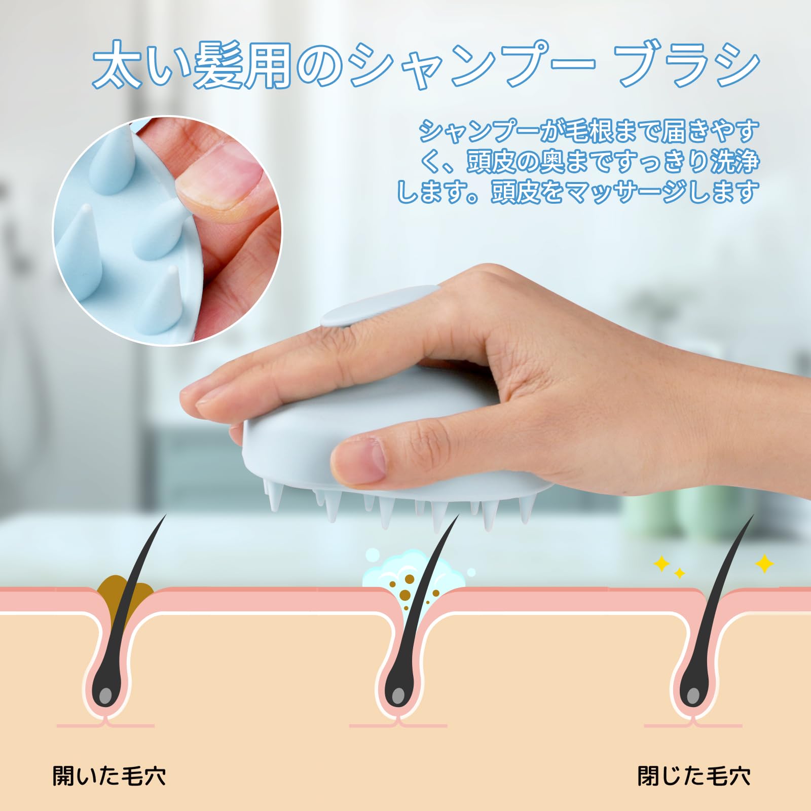 シャンプーブラシ スカルプブラシ シリコン洗髪 ブラシ 男女子供兼用 洗髪 頭皮 毛穴 お風呂用 頭皮洗浄 頭皮ケア 清潔やさしい 乾湿両用