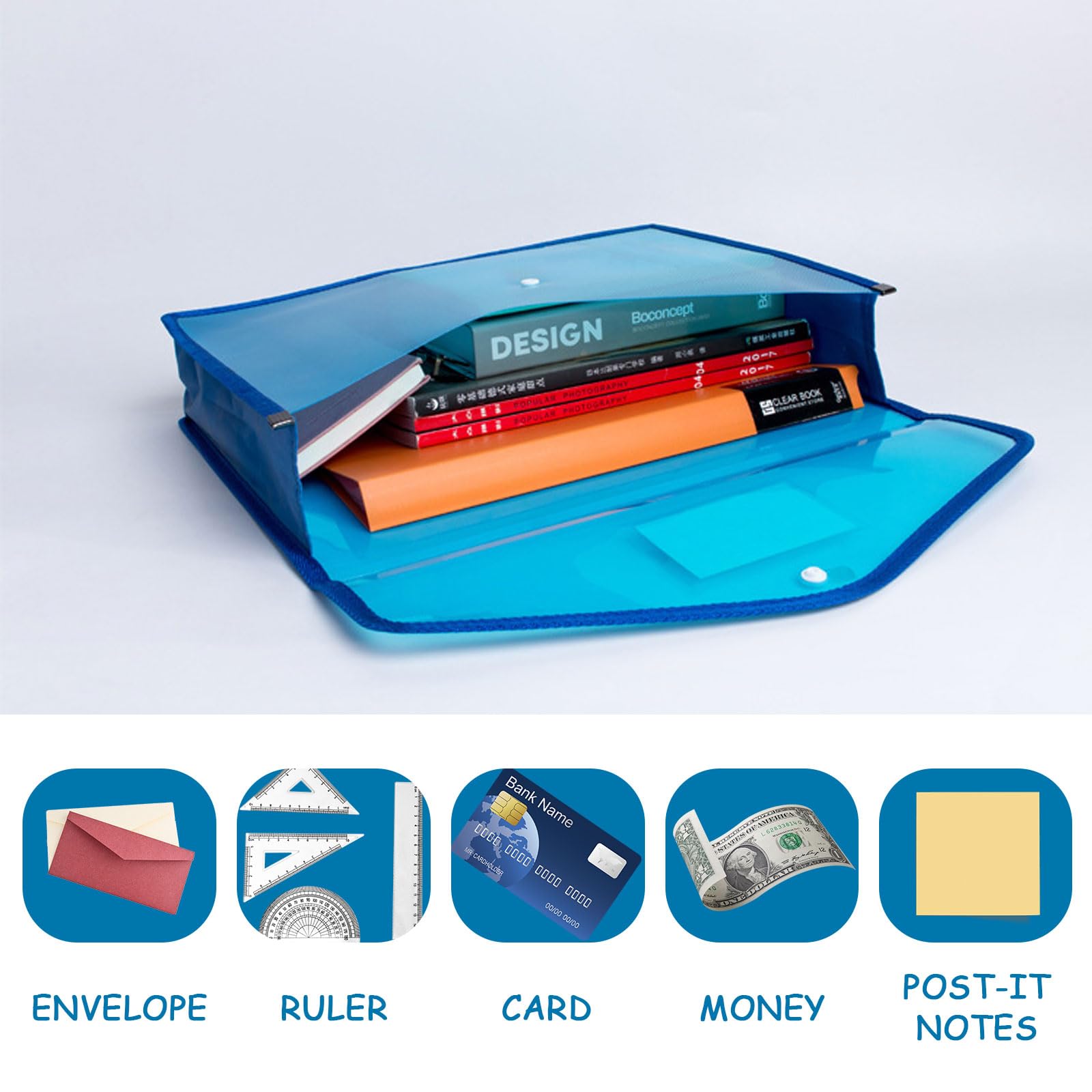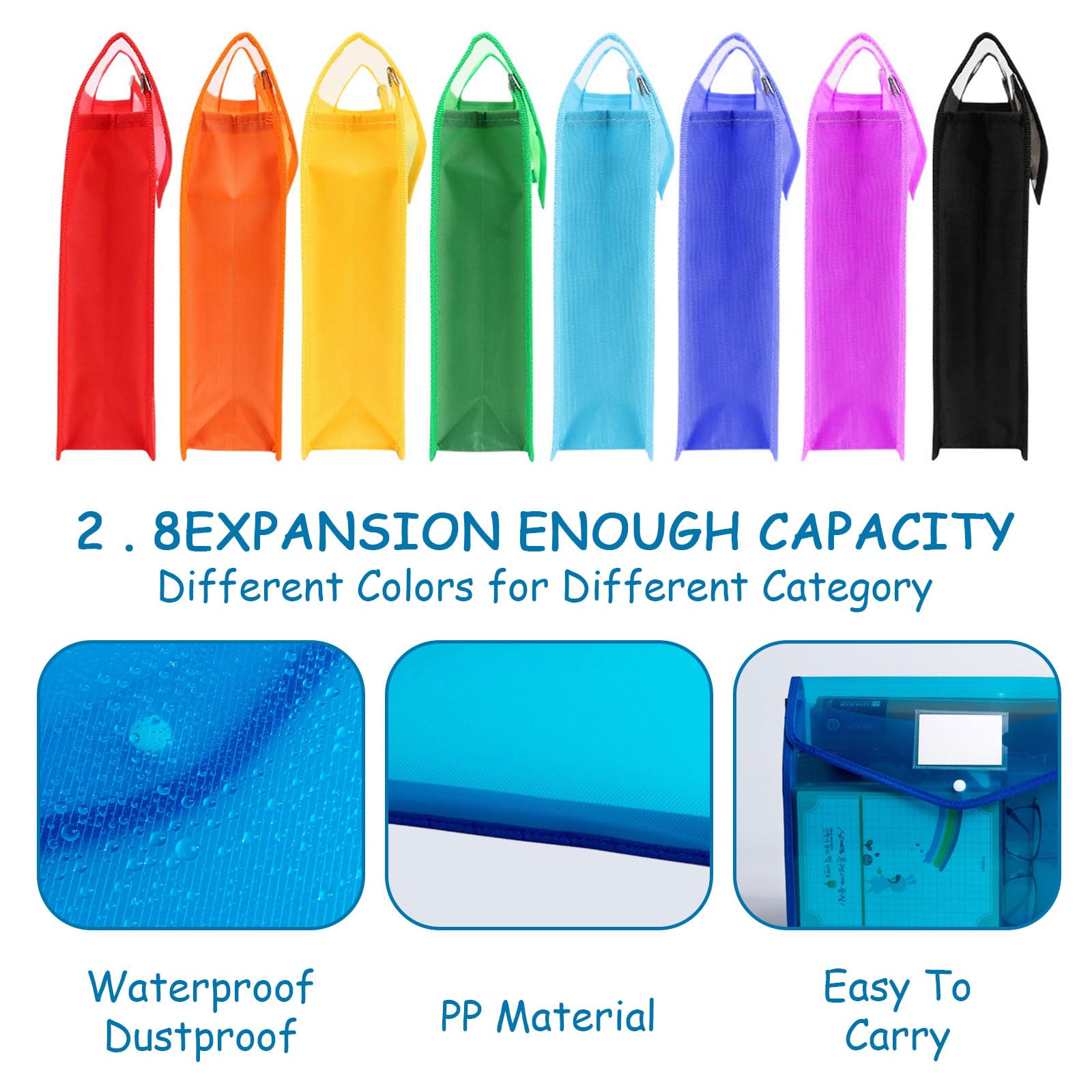 特徴: 1.実用性: 本クリアファイル袋は蓋付き、外から何がどこに入っているのか見えるのは便利です。 2.書類保護: 防塵性と防湿性があります、ドキュメントバッグを効果的に保護し、手に傷が付きにくいです。 3.便利: 手やバックパックに入れて持ち運ぶか、引き出しやファイルボックスに保存し、旅行、出張時にも適用します。 製品詳細: 素材:pp パッケージ重量:1050 g パッケージサイズ:34*26*4.5 cm パッケージの内容: 8* A4ファイル収納袋