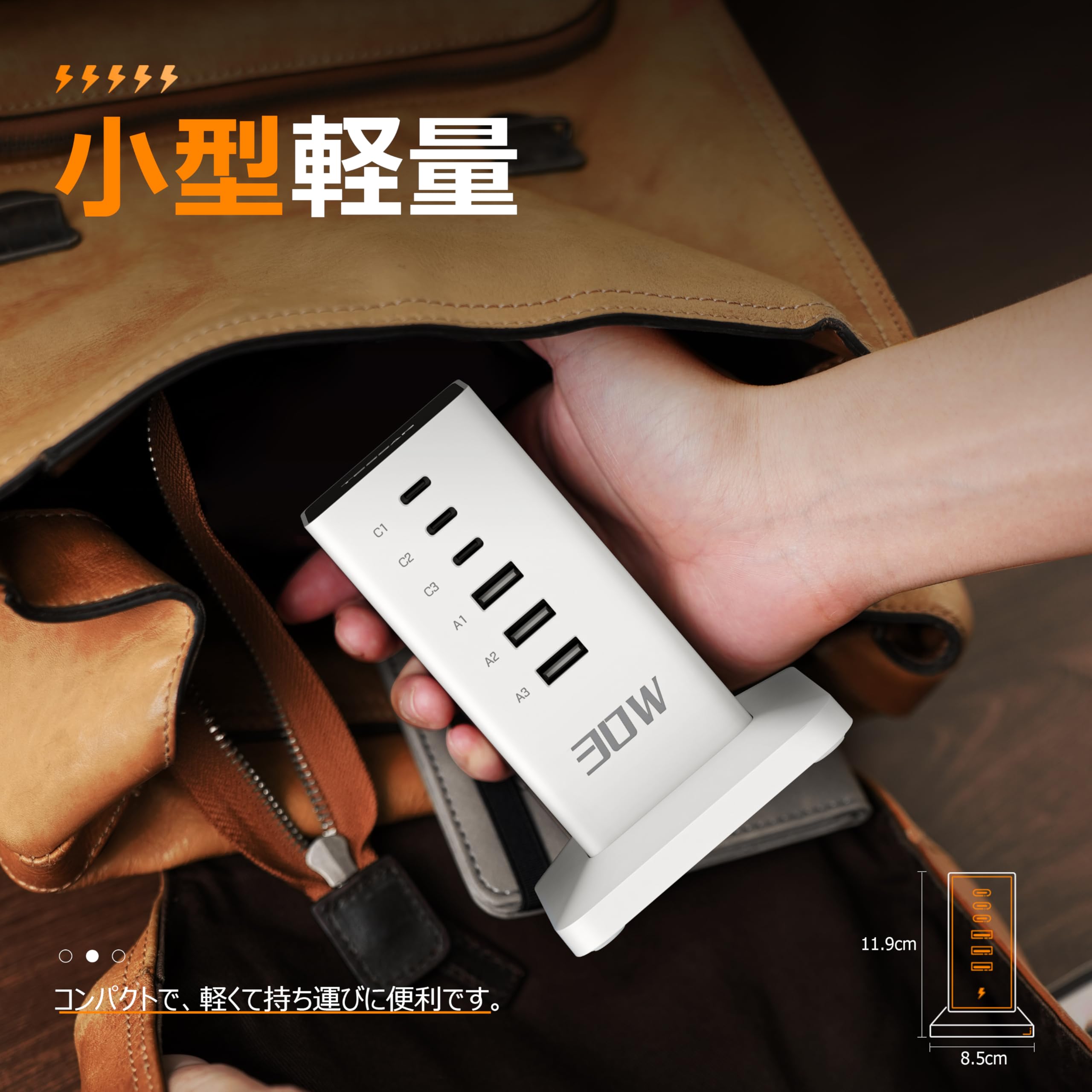 これは3個のusb-aポート、3個のusb-cポートを搭載しているusb コンセントです。これ1つのusb タップで、6台の機器を同時に充電できます。また、このOA タップはUSBポートを搭載しているので、スマートフォンやタブレットなどの多機種の電子機器への充電ができます。安全材料で作られて、お客様に安全便利さを提供します。6個ポートの最大出力は30Wになって、ご充電需要を満たします。