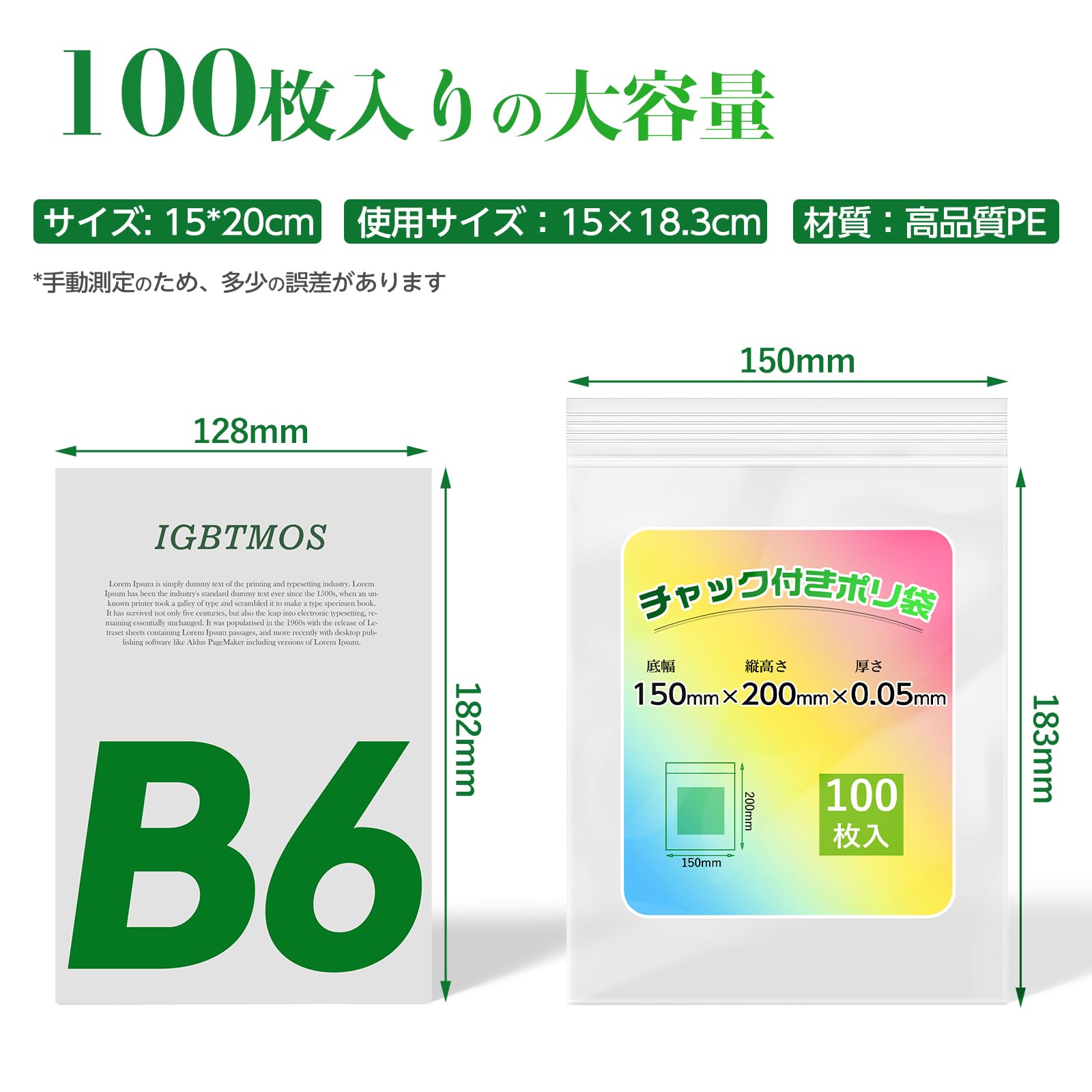 IGBTMOS チャック付きポリ袋 厚手 ミニ 横15cm×縦20cm 厚み0.1mm 100枚 小分け袋 強い靭性 透明 良好な密閉性 防塵 防水 保管と整理に使用されます