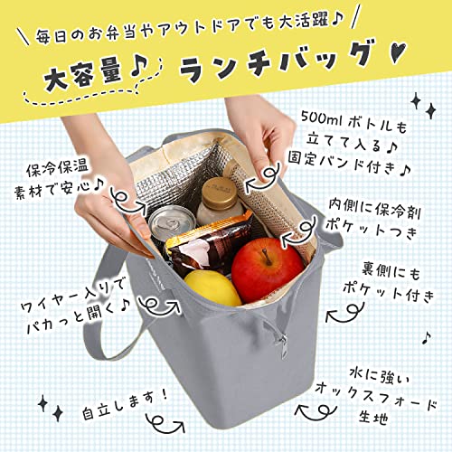 ランチワイヤーバッグ 保冷バッグ 保冷ランチバッグ 撥水 抗菌おしゃれ クーラーバッグ がま口 ランチバッグ 縦型 ランチバック お弁当 飲み物 お弁当袋 ペットボトル 水筒 大きめ 大容量 保温 メンズ キッズ クルール シンプル 無地 (グレー)