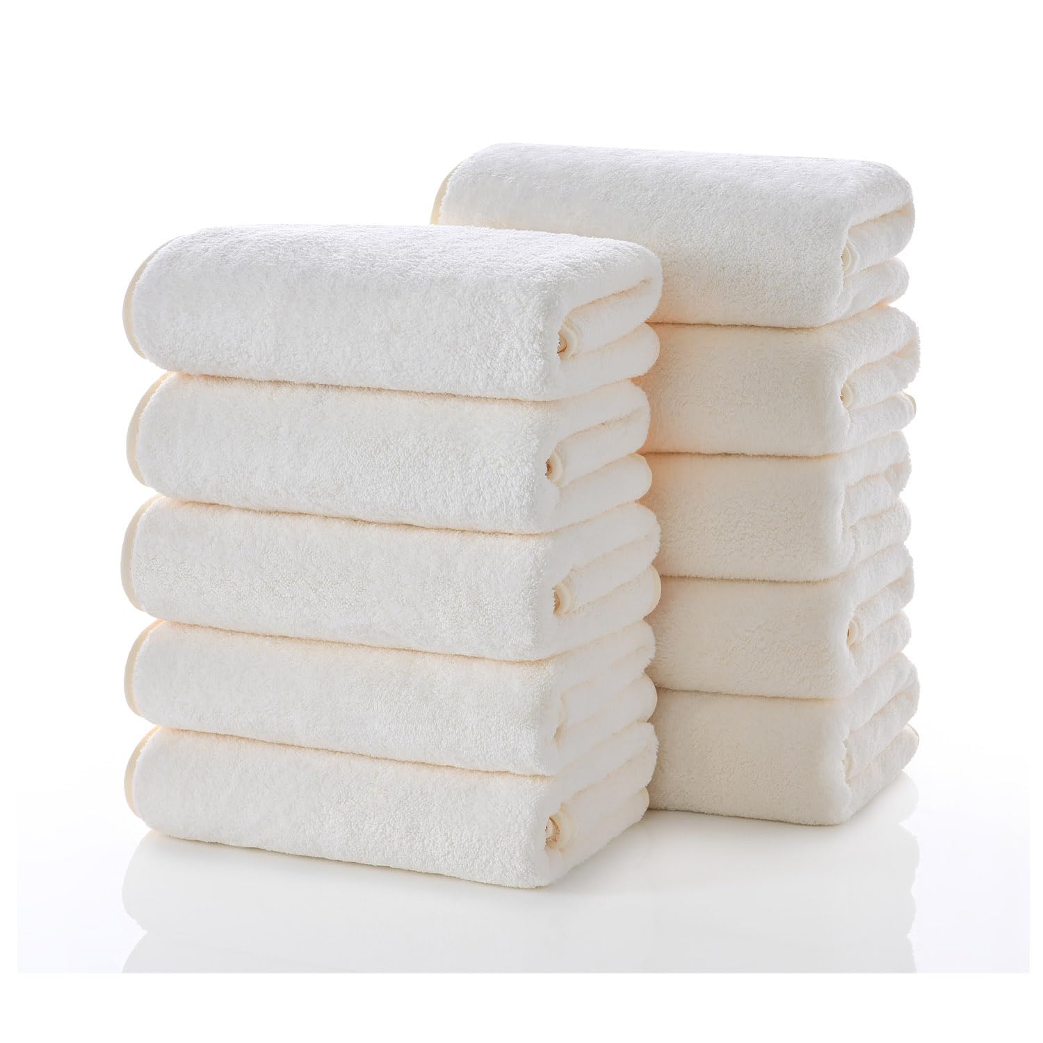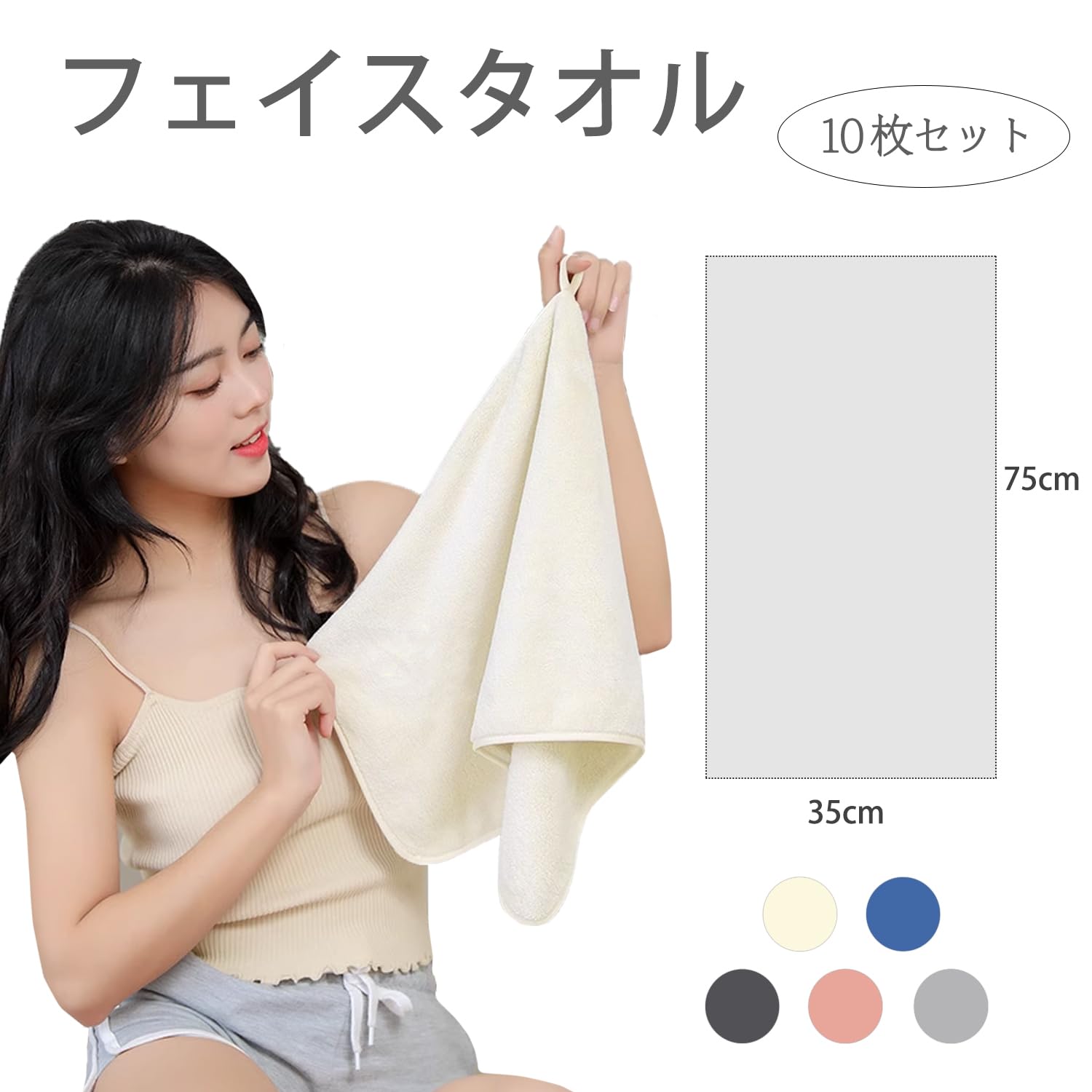 フェイスタオル マイクロファイバー タオル 10枚セット 約35X75cm ホテル仕様 柔らか肌触り 高速吸水 速乾 耐久性 人気 家庭 エステ サロン スポーツ 業務用 (ホワイト)