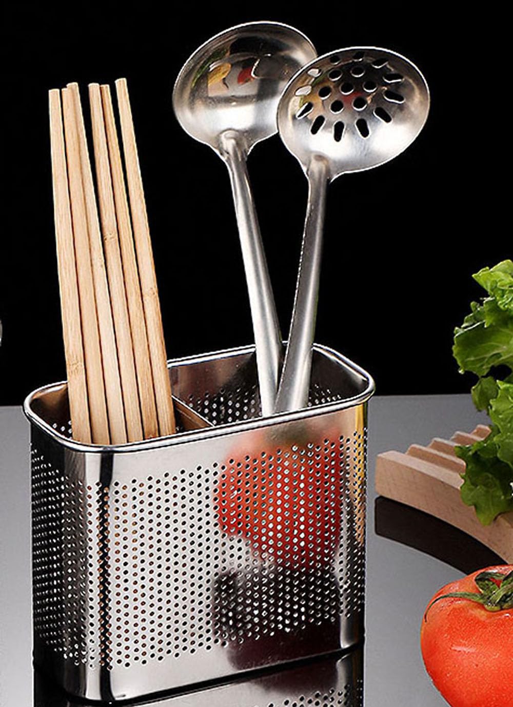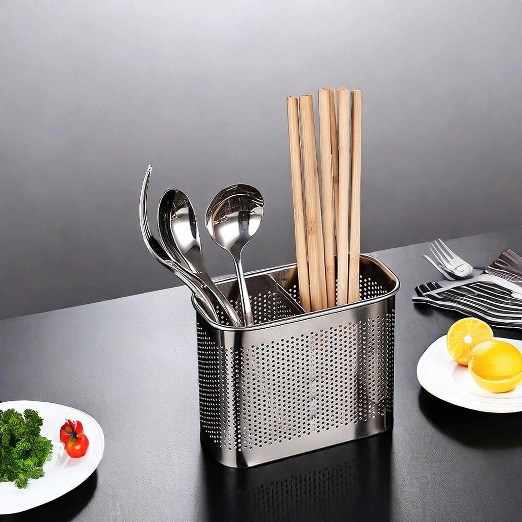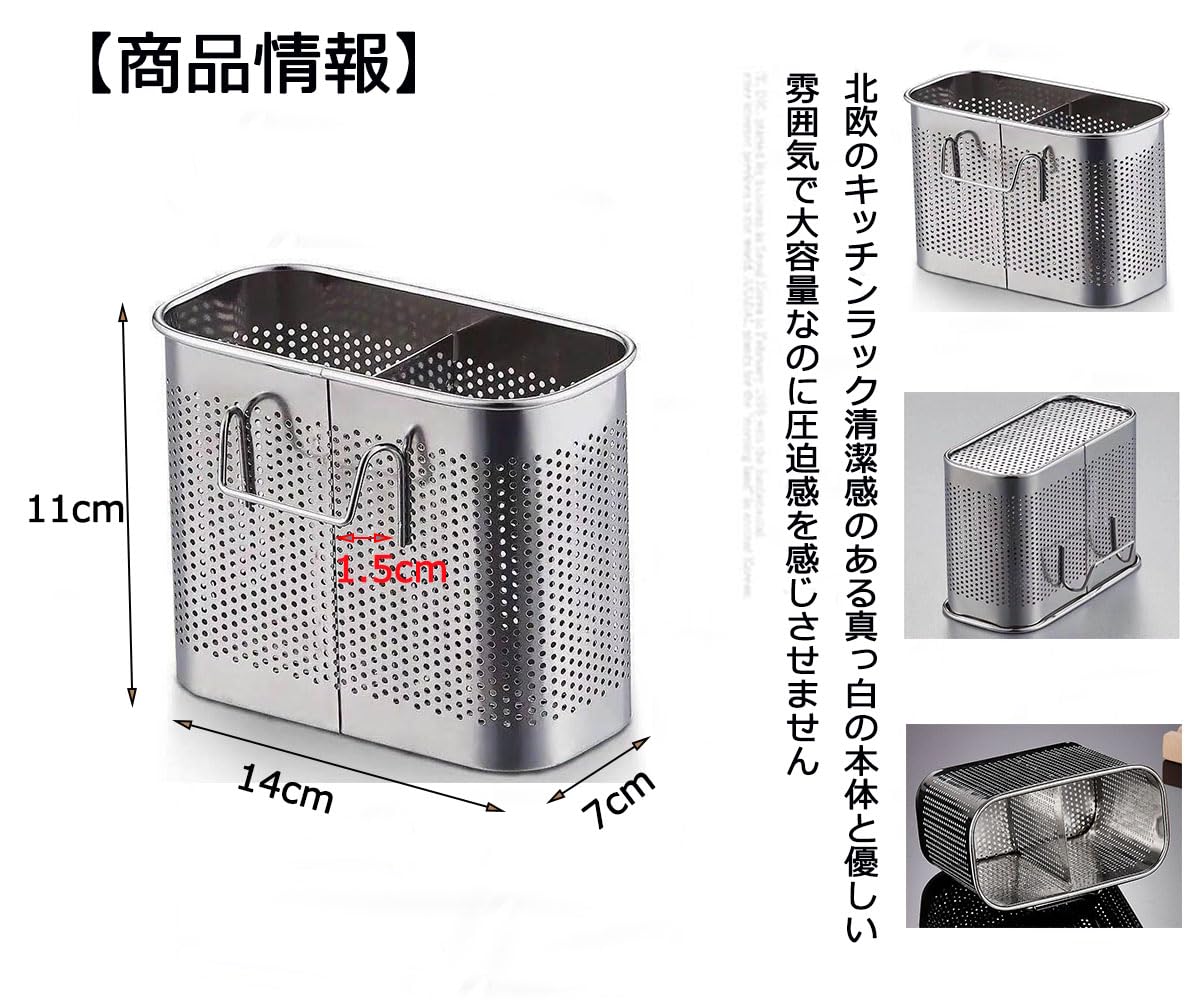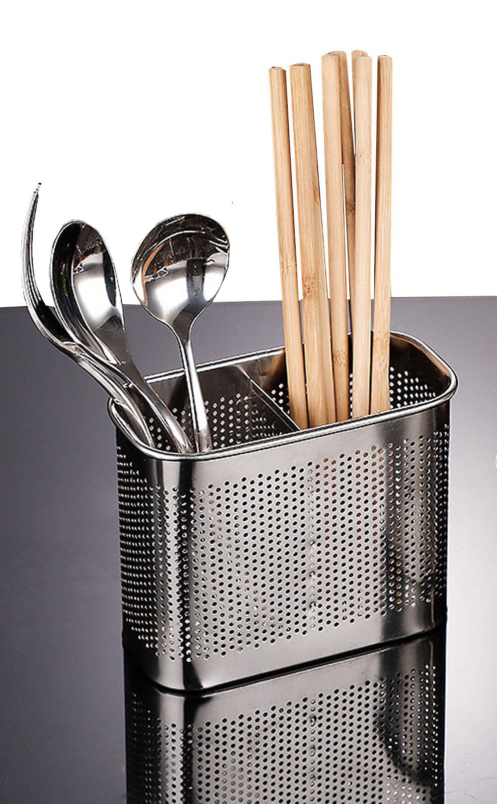 キッチン用品を整理するためのステンレス製のカトラリースタンドです。箸、スプーン、フォークなど様々な食器を収納できます。