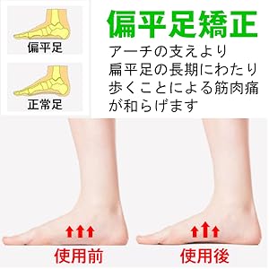 【偏平足の改善】 足のラインをまっすぐな状態に近づけて、骨格バランスを整え、脚が真直ぐに、長時間歩きの疲れが軽減し、全体的に体がリラックスできます。
