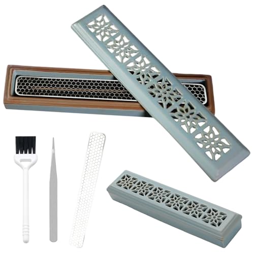 お香立て 横置き 安全 おしゃれ 陶器製 ステンレスネット付 香炉 携帯用 線香立て 書斎 瞑想 寝かせる 供養 仏壇 茶道 用品 インテリア…