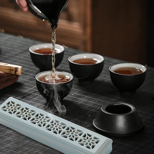 お香立て 横置き 線香立て 4個セット セラミック香炉 安全 和風 透かし彫り おしゃれ お盆 瞑想 ヨガ 座禅 ベッドルーム 室内読書 和室 茶道 インテリア (ブラック)