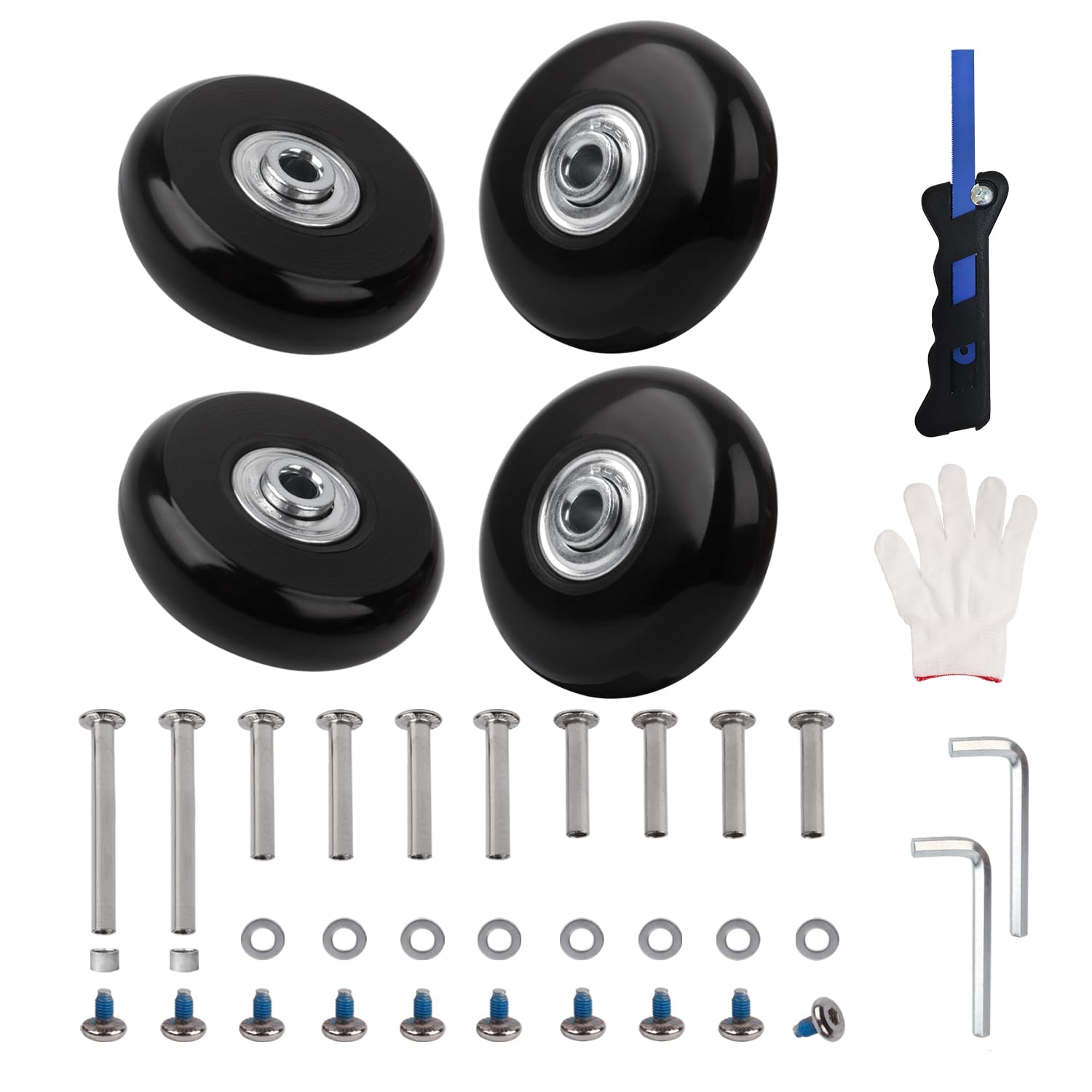 スーツケースキャスター 4個セット 車輪 タイヤ 交換 修理 取替えDIY用 交換用車輪 車輪補修用 切断用鋸付き(輪軸30/35/60mm 輪幅18mm 輪直径54mm)