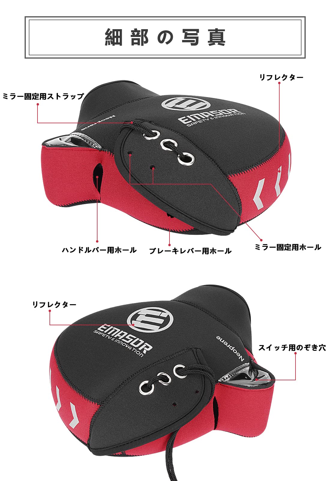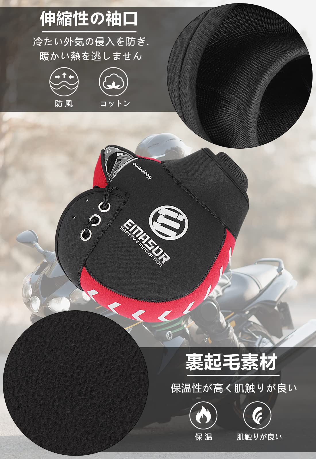【高級なネオプレーン材質】バイクハンドルカバーは3層の異なる生地で構成されています。1層目は伸縮性の高い生地で、2層目はネオプレーン材質で、3層目は起毛素材です。柔らかさ、防風、防水、保温の機能を十分に発揮します。通勤や通学などバイク使って暖かくサポートします。 寒い季節でも指先暖かく快適にサイクリングライドを楽しめます。 【保温性抜群】開口部のカフスは、冷たい外気がバイクハンドルカバー内部への侵入を防ぐために、伸縮性のあるニットコットン生地でできています。内部空間は広く、起毛の裏地と組合せると、操作が妨