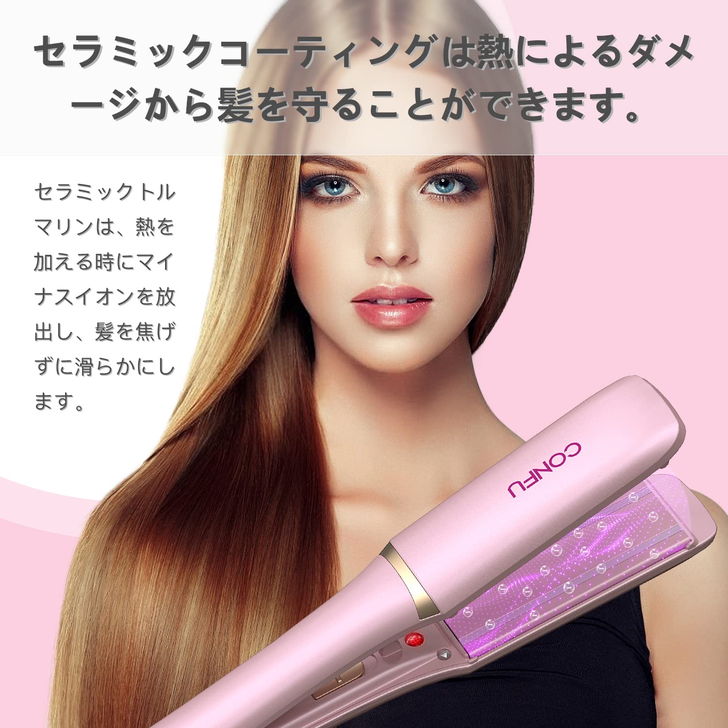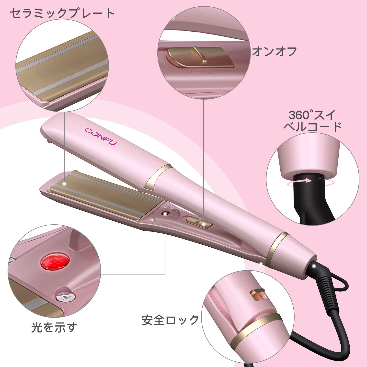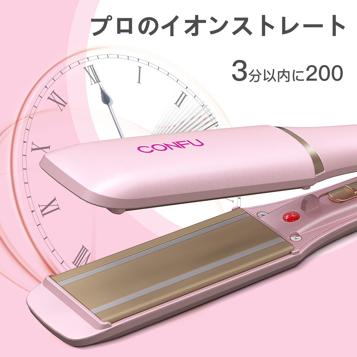 CONFU アイロン ストレート 6段階温度調整 38mmピンク ストレートヘア MAX230°