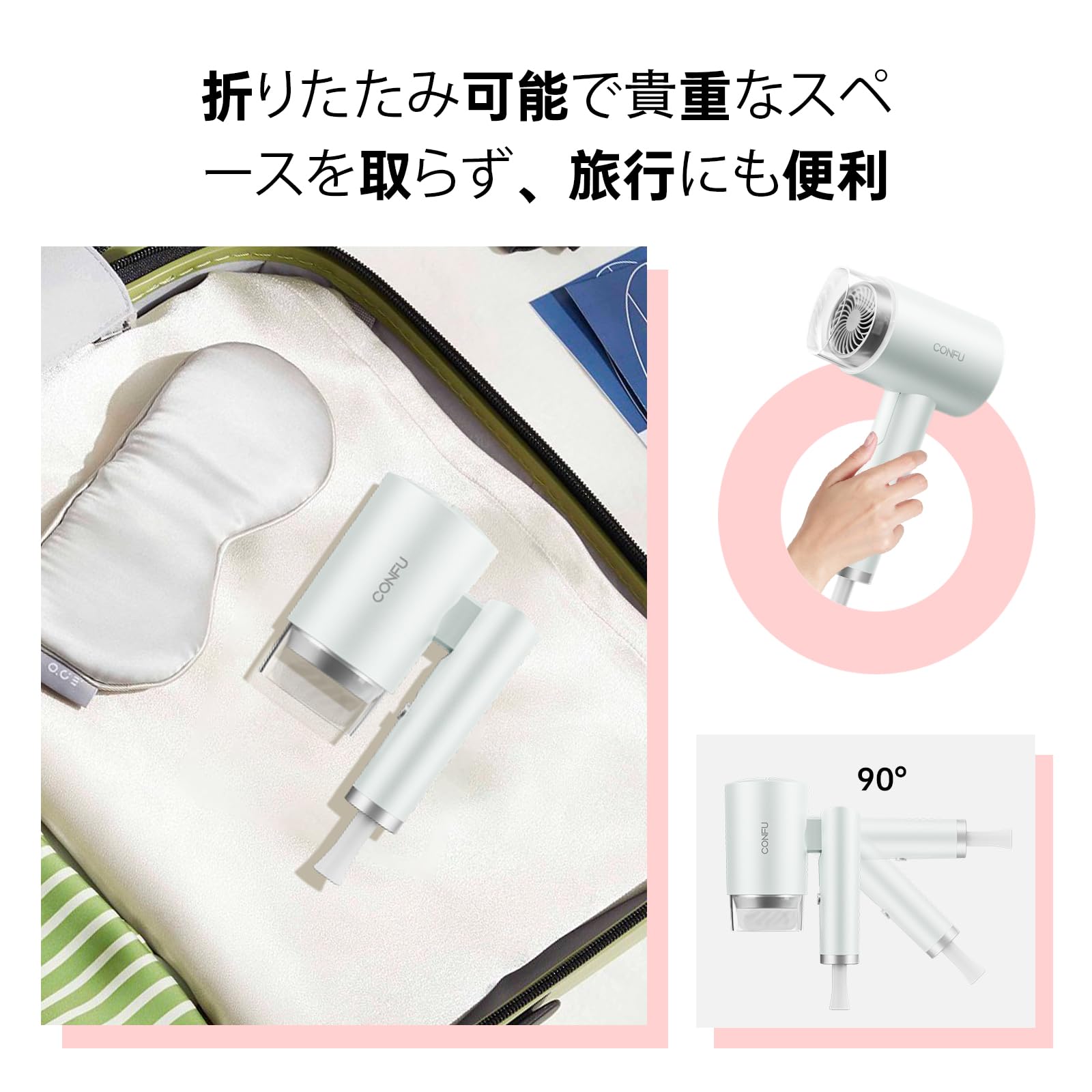 CONFU ドライヤー 1200W ヘアドライヤー マイナスイオン 三段階風量調節 冷/熱風モード 折り畳み式 軽量 速乾 恒温 旅行・出張・家庭用