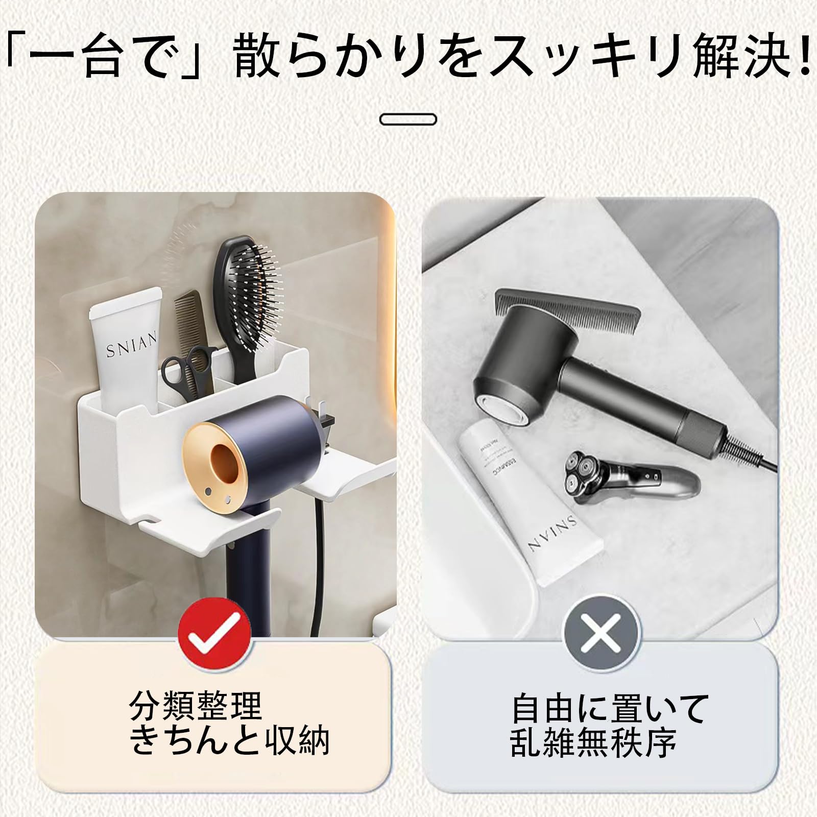 小物収納多機能ラック 浴室ヘアドライヤー収納ラック ドライヤーホルダー ドライヤー収納 ドライヤー収納ボックス ヘアドライヤーホルダー 収納付き 壁掛け ネジ止め 耐荷重性 小物収納 耐湿性 お風呂 洗面所 浴室 理髪店用