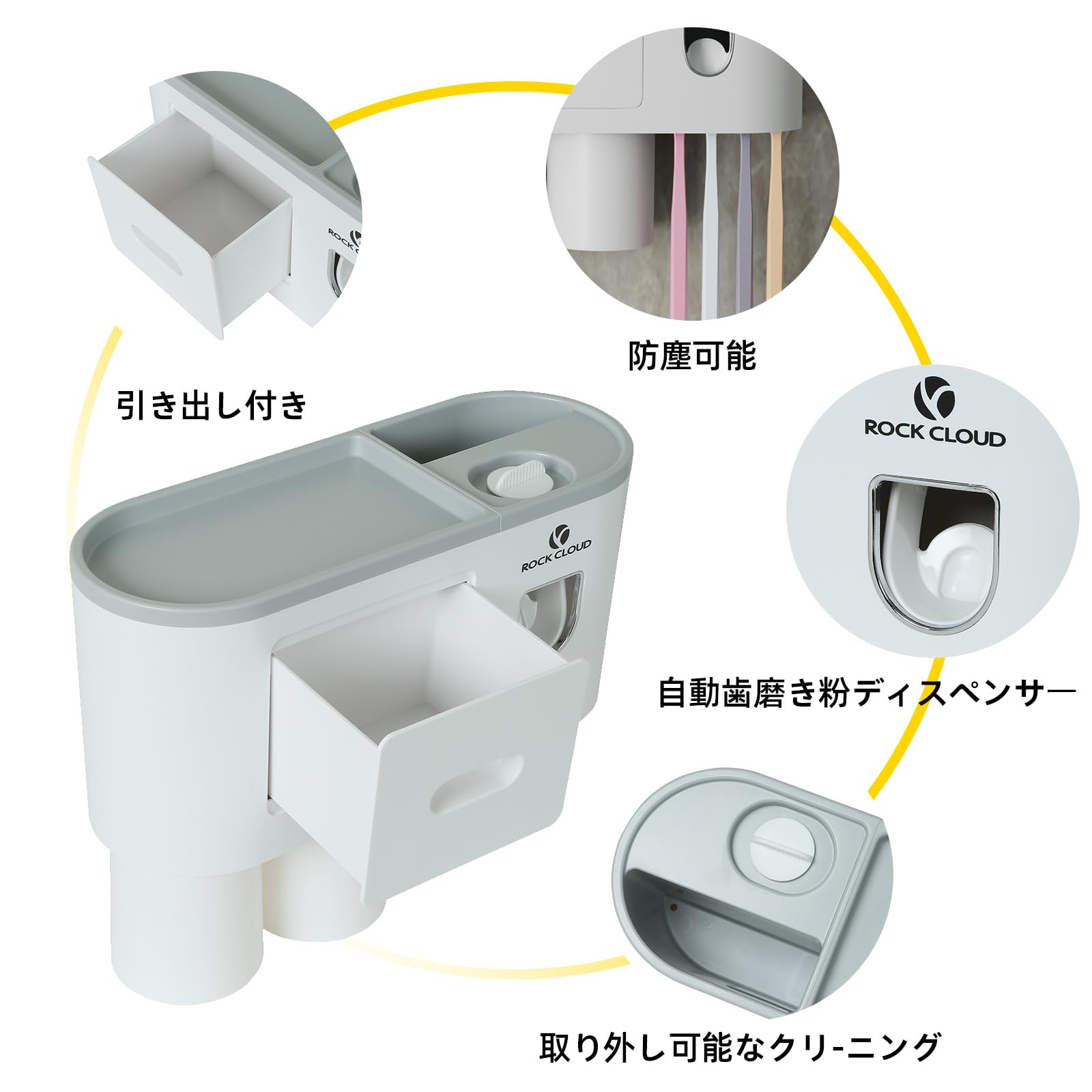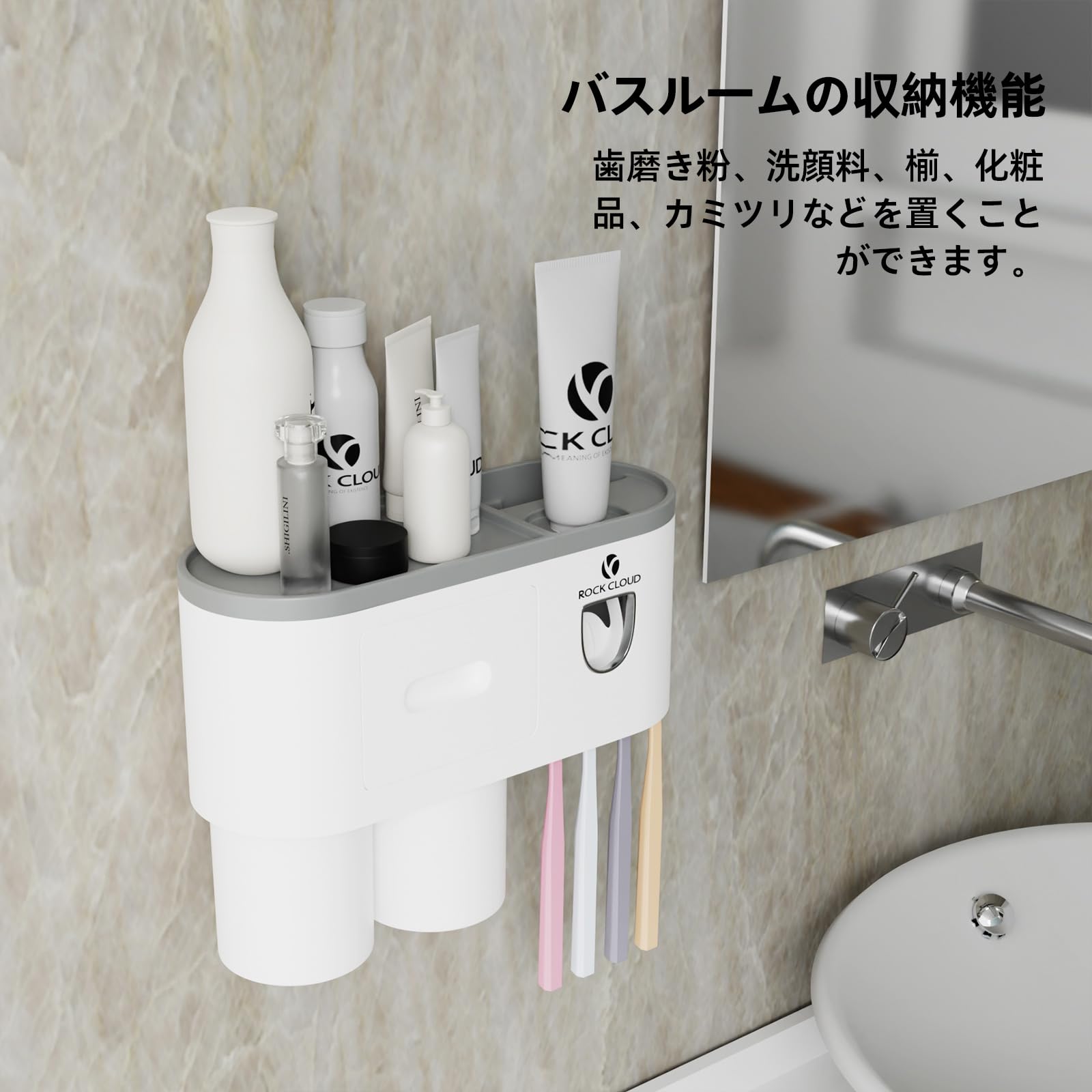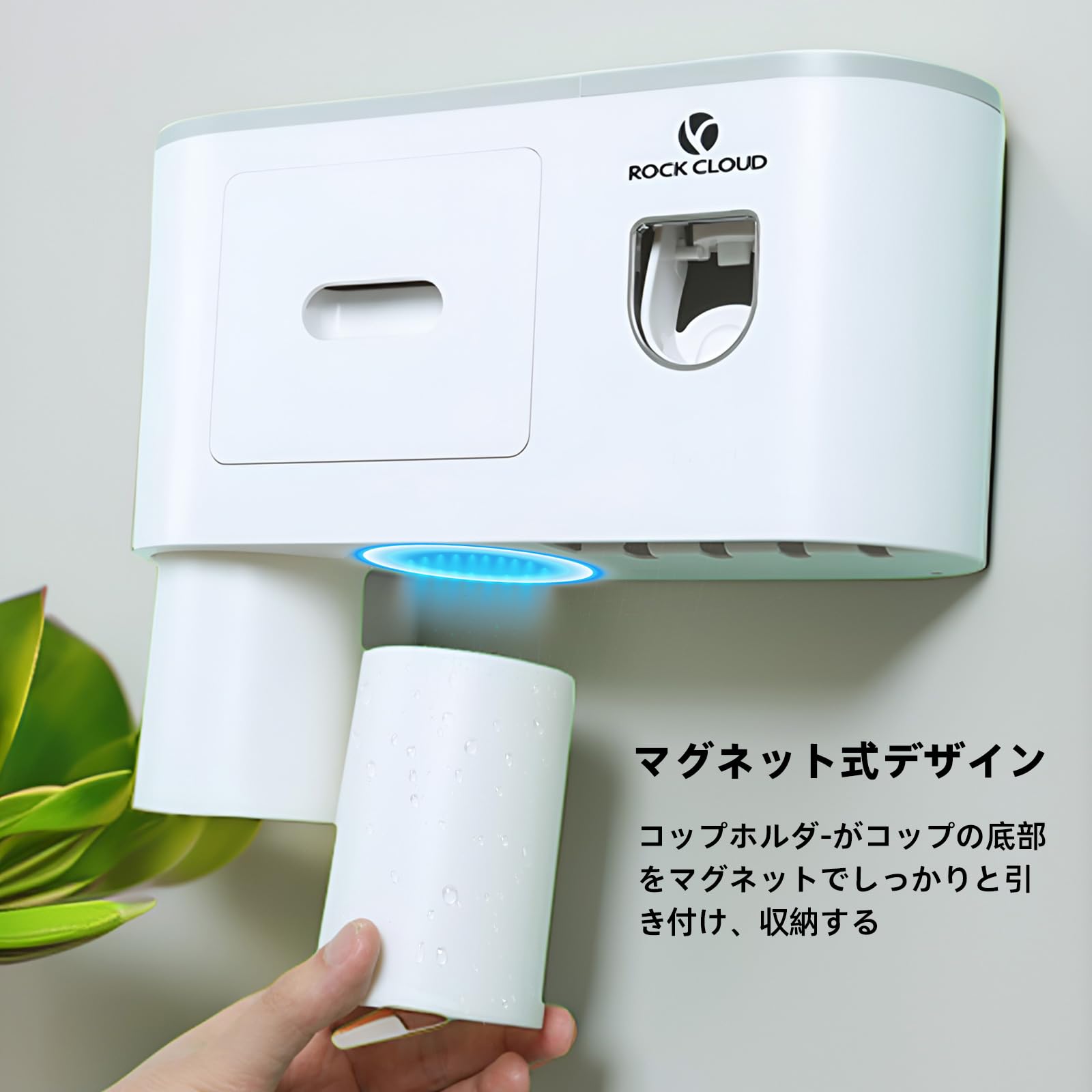 Umido 歯ブラシスタンド 歯ブラシホルダー 自動歯磨き粉ディスペンサー付き おしゃれ 歯ブラシ コップ スタンド バスルーム整理 風呂 収納 自動歯磨き粉絞り器 バスルームアクセサリー 高性能 歯ブラシ 浮かせる 穴あけ不要 電池不要 インストールが簡単 耐久性 バスルーム/トイレ/洗面台など用 (うがいコップ×2)
