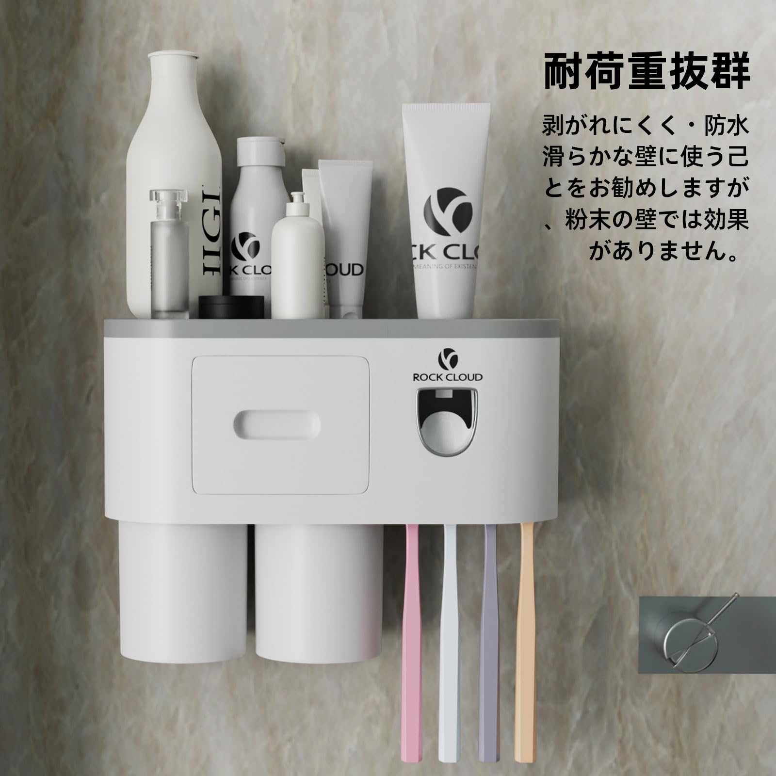Yuehuam 歯ブラシスタンド 壁掛け 歯ブラシホルダー おしゃれ 歯ブラシ立て 歯磨き粉ホルダー 電動歯ブラシスタンド 3カップ 浮かせる 収納 歯ブラシたて 歯磨き コップ 洗面所 自動歯磨き粉絞り器 穴あけ不要 トイレタリー収納 多機能 コップ立て 家族 グレー