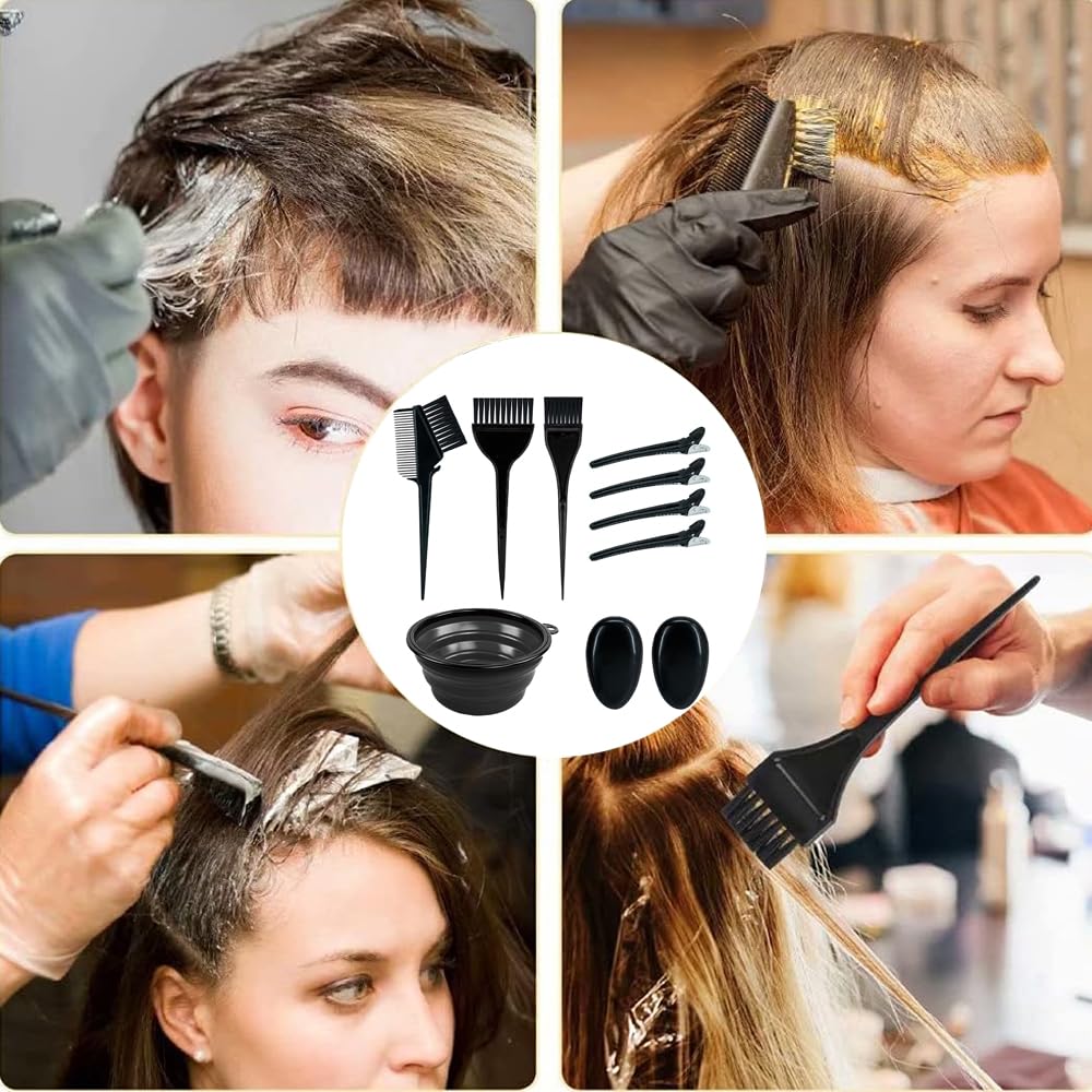 毛染めセット ヘアカラーセット 9本セット 髪染めセット ヘアダイブラシ プロ用毛染めブラシセット ヘアカラーコーム ヘアカラーボウル 耳カバー 髪染めヘアクリップ DIY髪染め用 再利用可能 男女兼用
