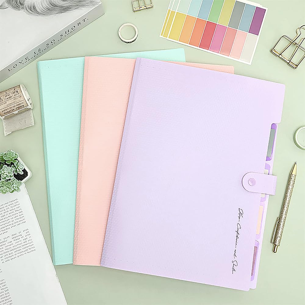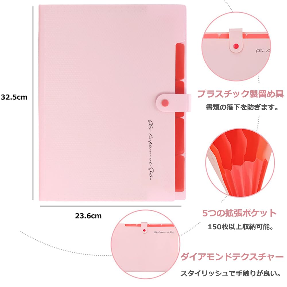 ファイルボックス 5ポケット 拡張ファイルフォルダー ドキュメントファイル A4 スナップ式 防水 ラベル付き 分類収納 教室 オフィス 文房具 (パープル)
