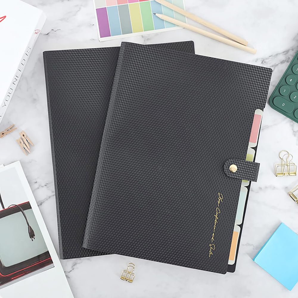 FRETONBA ドキュメントファイル 8ポケット A4 クリア 拡張フォルダー スナップ式 ジャバラファイル 仕分け ラベル付き 防水 分類収納 透明仕切り プリント整理 書類整理ボックス 多機能 書類ケース 軽量 持ち運び可能 (ブラック)