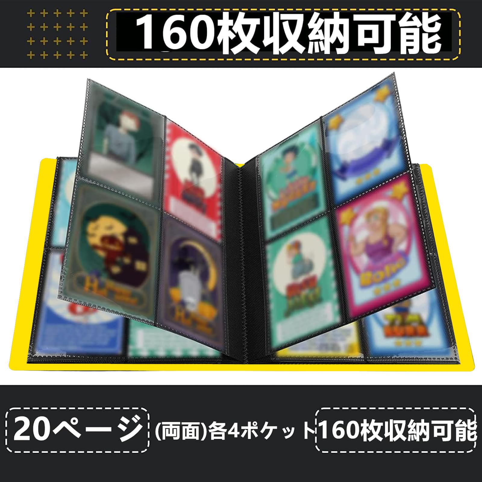 カードファイル カードバインダー 4ポケット 160枚収納 横入れ トレカホルダー バインダーホルダー シールファイル トレーディングカード フォトアルバム ファイル ブック (イエロー)