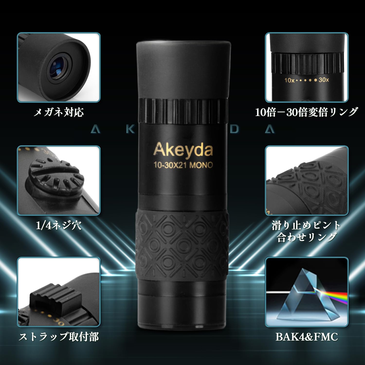 Akeyda 単眼鏡 8x21 美術館モデル 美術鑑賞 マルチモノキュラー アーツモノキュラー メガネ対応 ケース ストラップ付