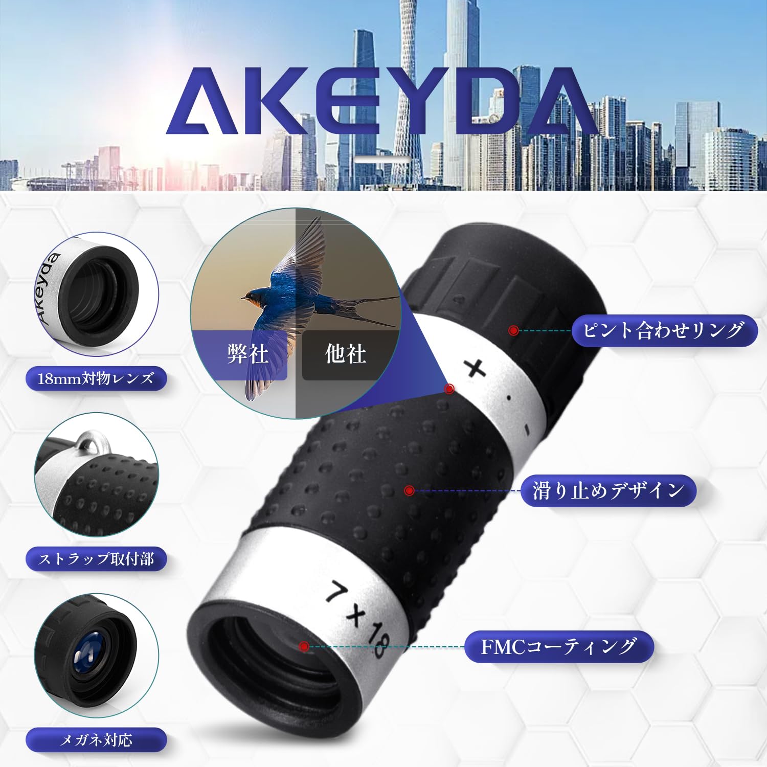 Akeyda 10‐30x21 単眼鏡 望遠鏡 10倍~30倍 21mm口径 単眼きょう 小型 コンパクト 軽い 小さい 便利 双眼鏡 より軽い 高倍率 看板確認 黒板小さく見えない字確認 案内図確認 旅行 山登り キャンプ 価格相応品質 モノキュラー 一眼鏡 メガネ対応 ケース ストラップ付