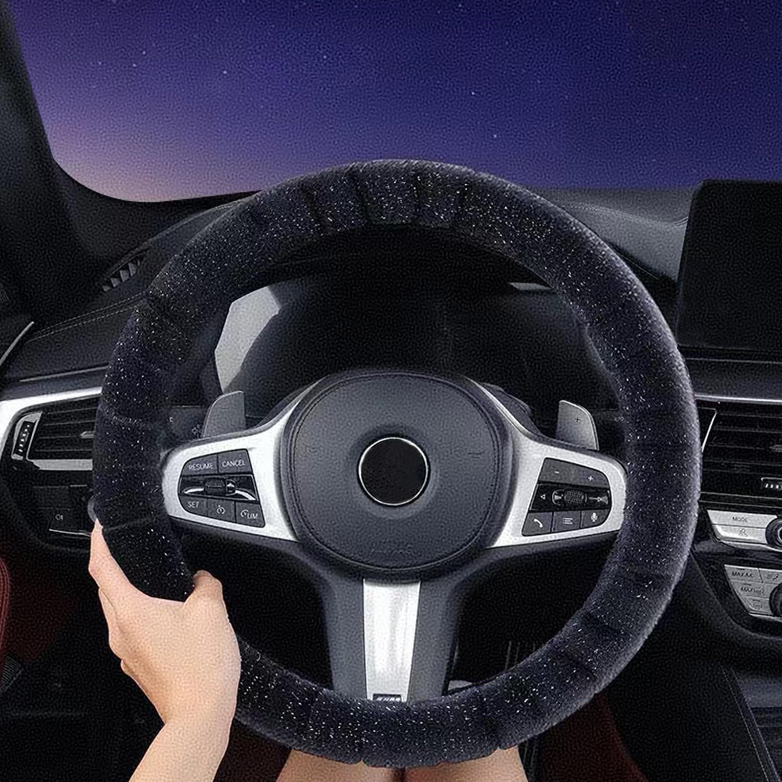 PICKSHI 車 ハンドルカバー 冬 暖かい ステアリングカバー sサイズ 軽自動車 軽トラ 普通車 カーアクセサリー 防寒 ウォーム 車用 柔らかい 滑らない (ブラック)