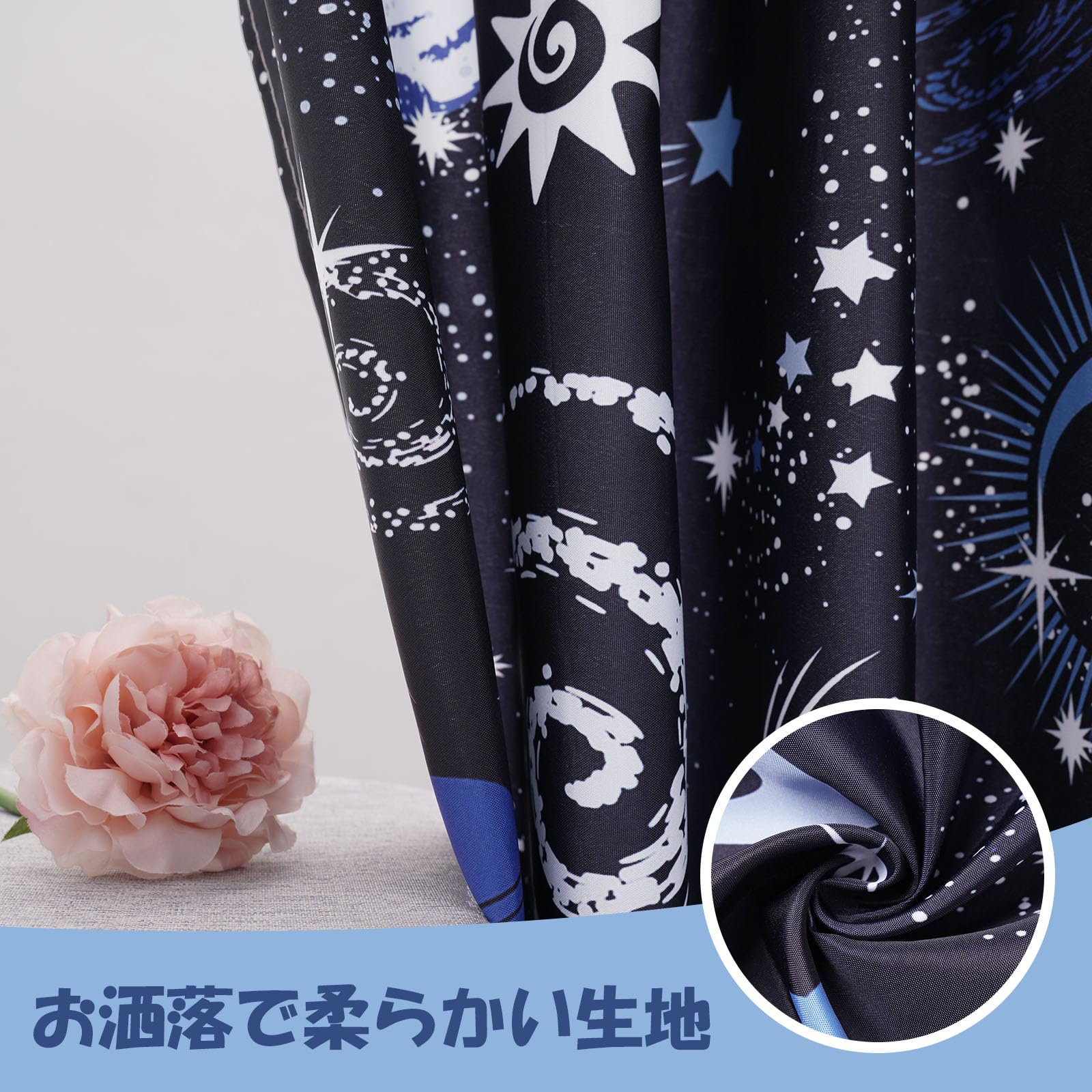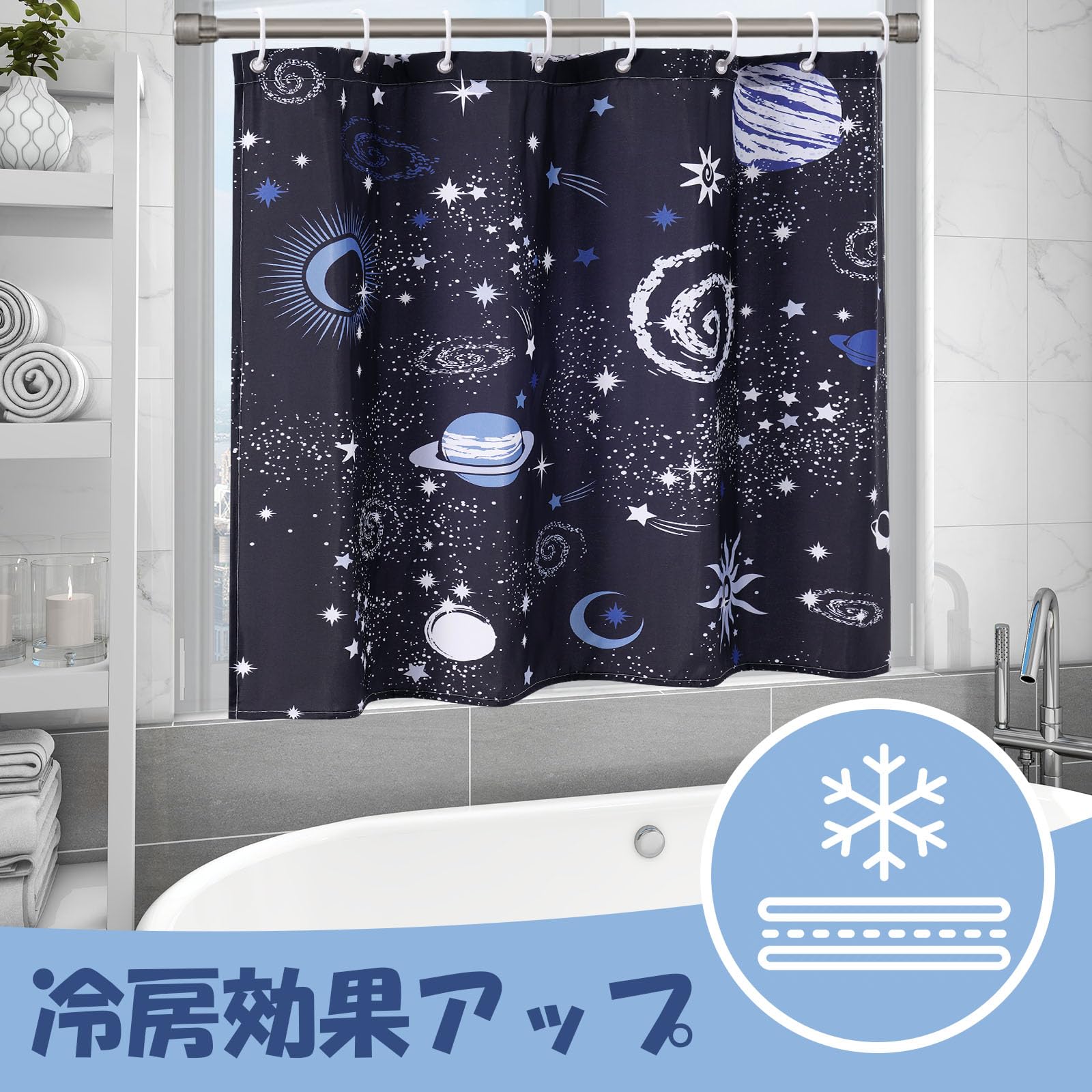 AooHome お風呂カーテン 小窓 目隠し シャワーカーテン 遮光 かわいい 防水 短め 防カビ ユニットバス 浴室窓 お風呂窓 45cm丈 カフェカーテン 空 星 宇宙 100cm幅 間仕切り リング付き 洗濯可 取付簡単