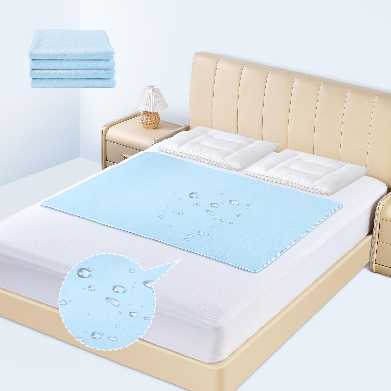 aceyoon 防水シーツ コットン 介護用防水シーツ 強力防水 ベビーシート 洗える おねしょシーツ 速乾 お手入れ簡単 通気 介護ベッドシーツ 100x140cm 2枚セット 介護用品 綿70% 半身用タイプ 丸洗い可能 妊娠 病人 赤ちゃん ペット用 ブルー Waterproof Liquid Pee Proof