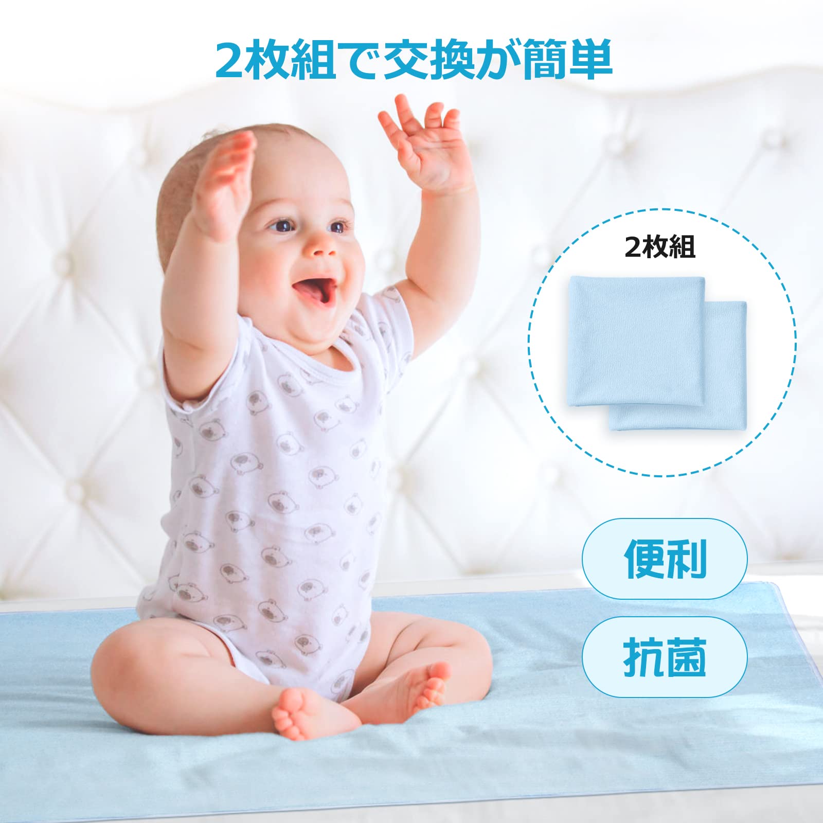 [MOMSMENU] 防水 おねしょシーツ ベビー おむつ替えシート 滑り止め オーガニックコットン こども用 おむつかえシート 洗濯可 持ち運びサイズ 50x70cm 2枚セット