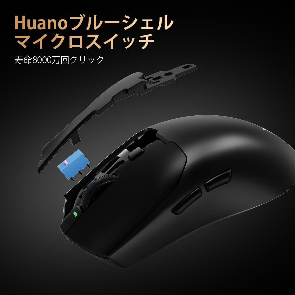 DELUX M700PRO ワイヤレスゲーミングマウス、59g軽量、PAW3395センサー26000DPI、クリック寿命8000万回 、バッテリー寿命90時間、デュアルモード有線/無線2.4G、1000Hzポーリングレート(ブラック)