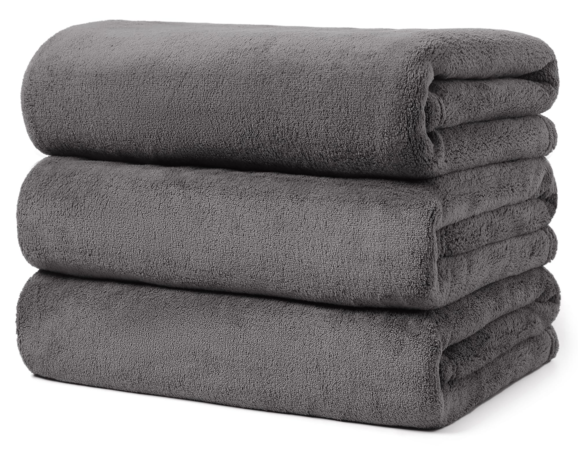 速乾バスタオルマイクロファイバー[3点セットグレー65*130cm] ふんわり大判面吸水速乾ホテル仕様タオル柔らかい生地美容タオル業務用タオルサロンタオル長持ち浴後の入浴製品