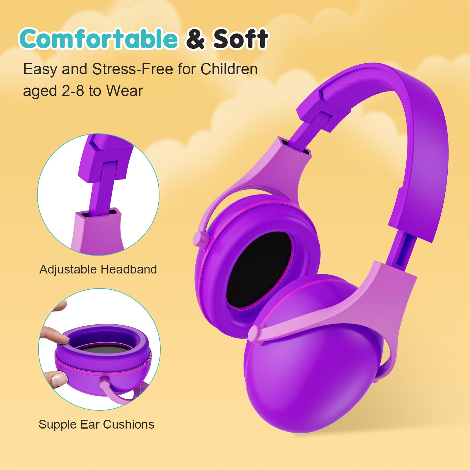 [ProCase] 2個入り 子供用 防音イヤーマフ 遮音 調整可能なヘッドバンド付き 耳カバー 耳あて 聴覚保護ヘッドフォン、ノイズ減少率:NRR 24dB - パープルインディゴ