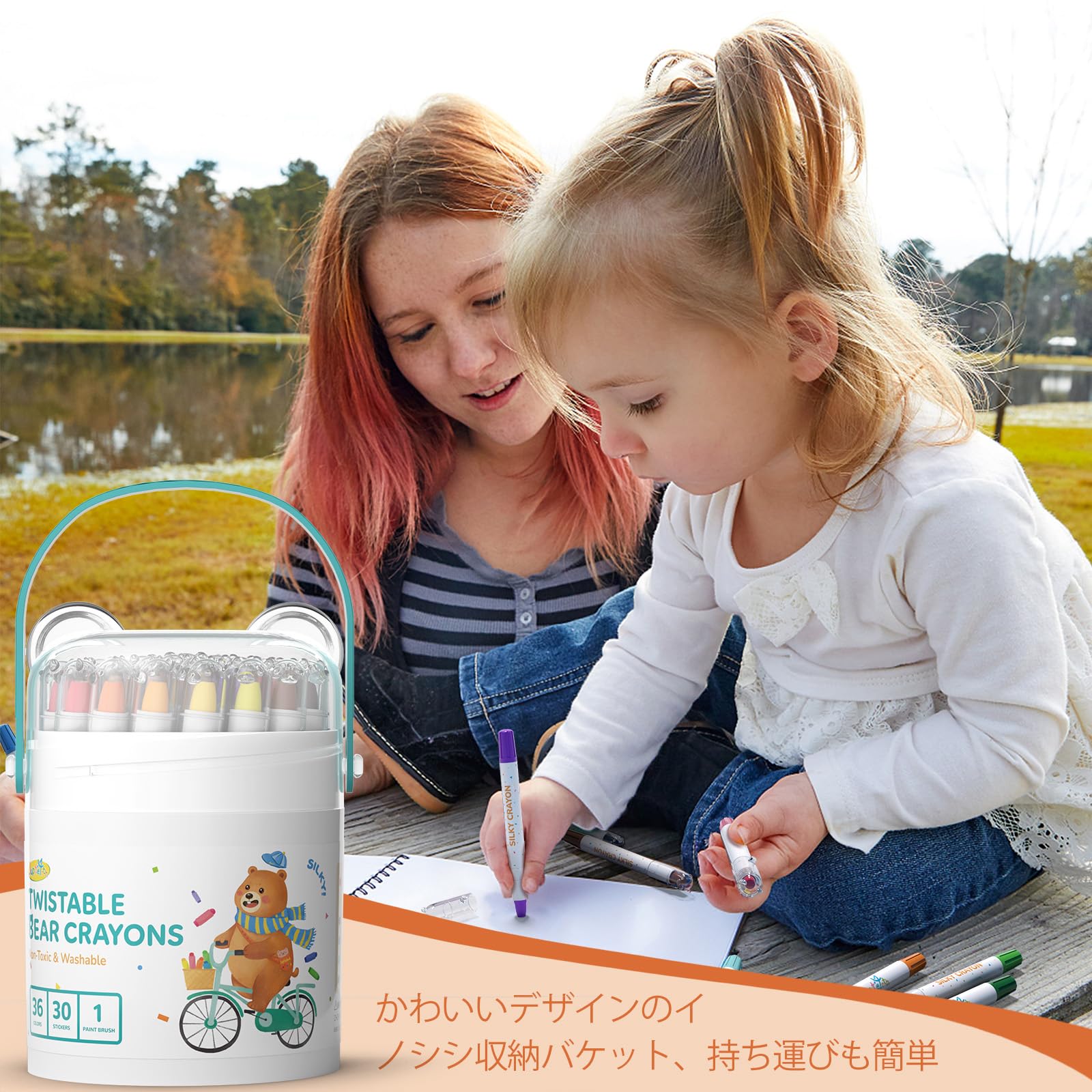 JUPITEARTH クレヨン 36色 クマタイプ パステルカラー 繰り出し式 かわいい 持ちやすい 手汚れない 折れにくい 安全 無毒 水で落とせる 塗り絵 落書き お絵描き 絵の具 セット 小学生 赤ちゃん 幼児