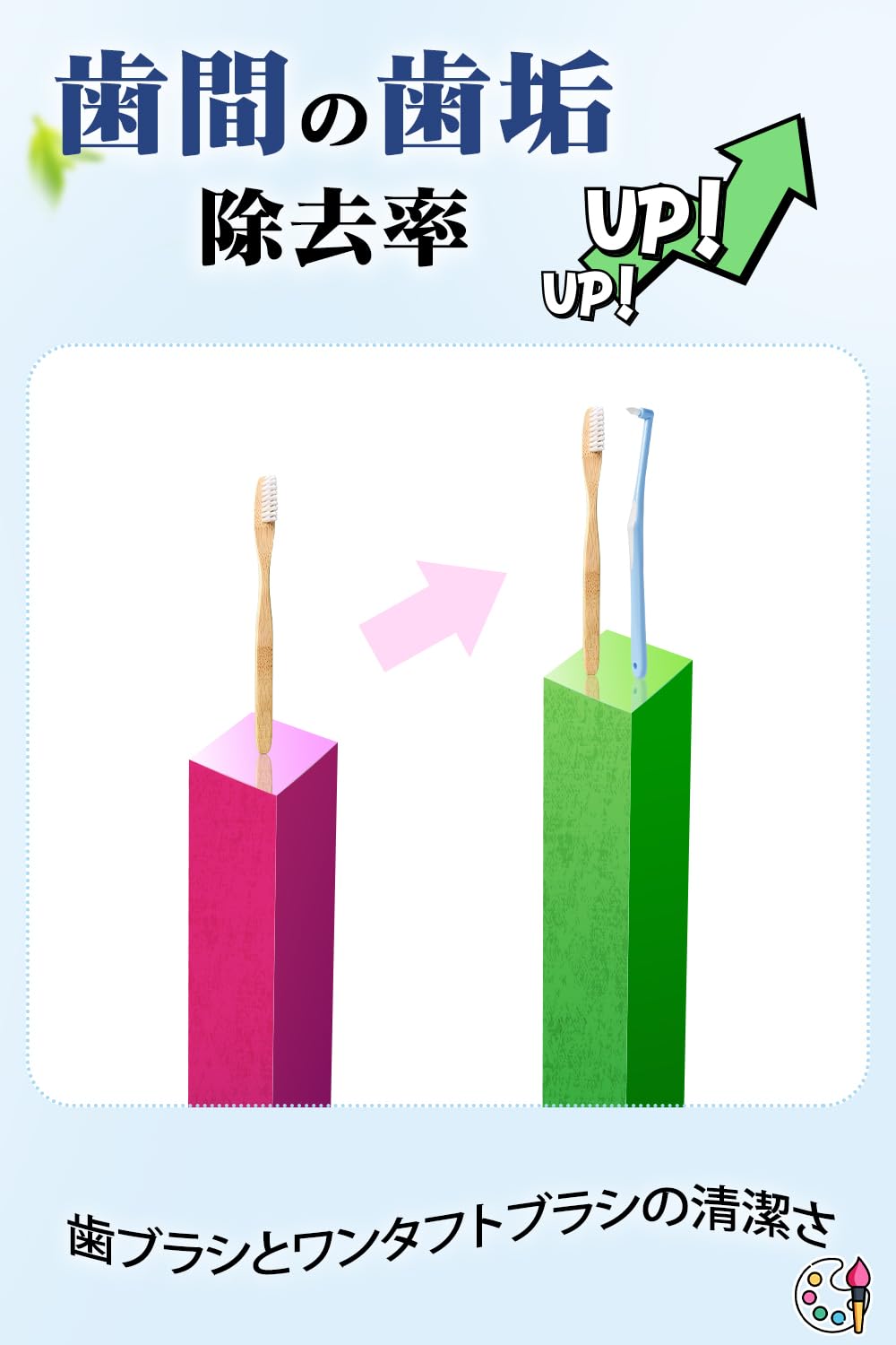 【使いやすいのワンタフト歯ブラシ】歯間や奥歯が磨きやすい。ハンドル部分が持ちやすい角度で奥歯の細かい部分にも届きやすい。歯ブラシは斜めにカットされているので細い隙間に横からも縦にも使えてきれいに磨ける。ブラシは柔らかめなので歯茎にも優しくマッサージできる。