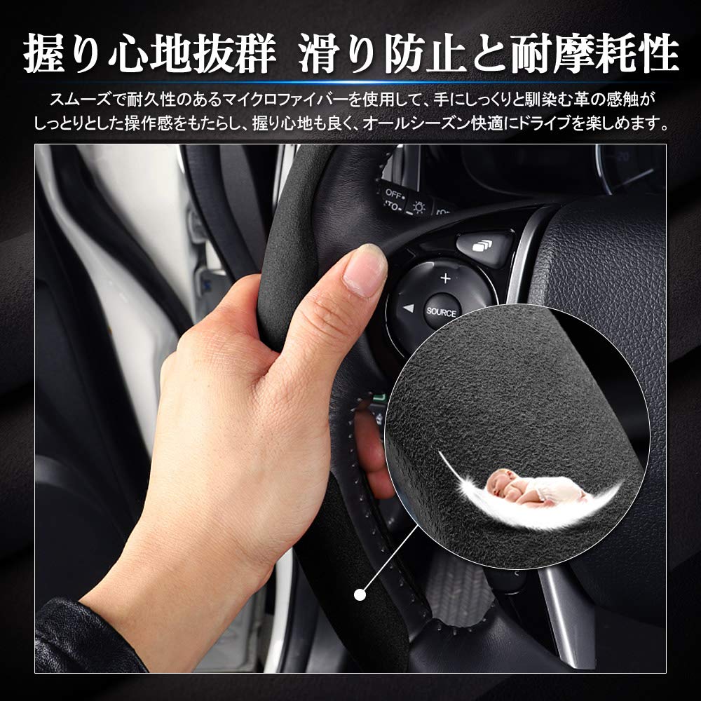 Cartist ハンドルカバー 車用 ステアリングカバー 汎用 軽自動車 普通車 おしゃれ 汚れ防止 滑り防止 オールシーズン対応 ハンドル 保護カバー カスタム 内装パーツ アクセサリー 2ピースセット 取付簡単 メーカー直営 (ブラック)