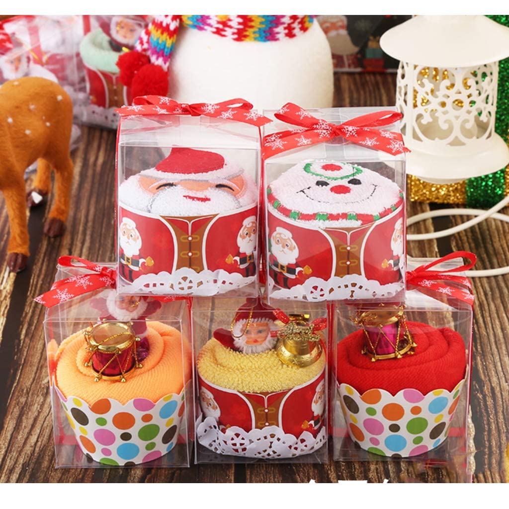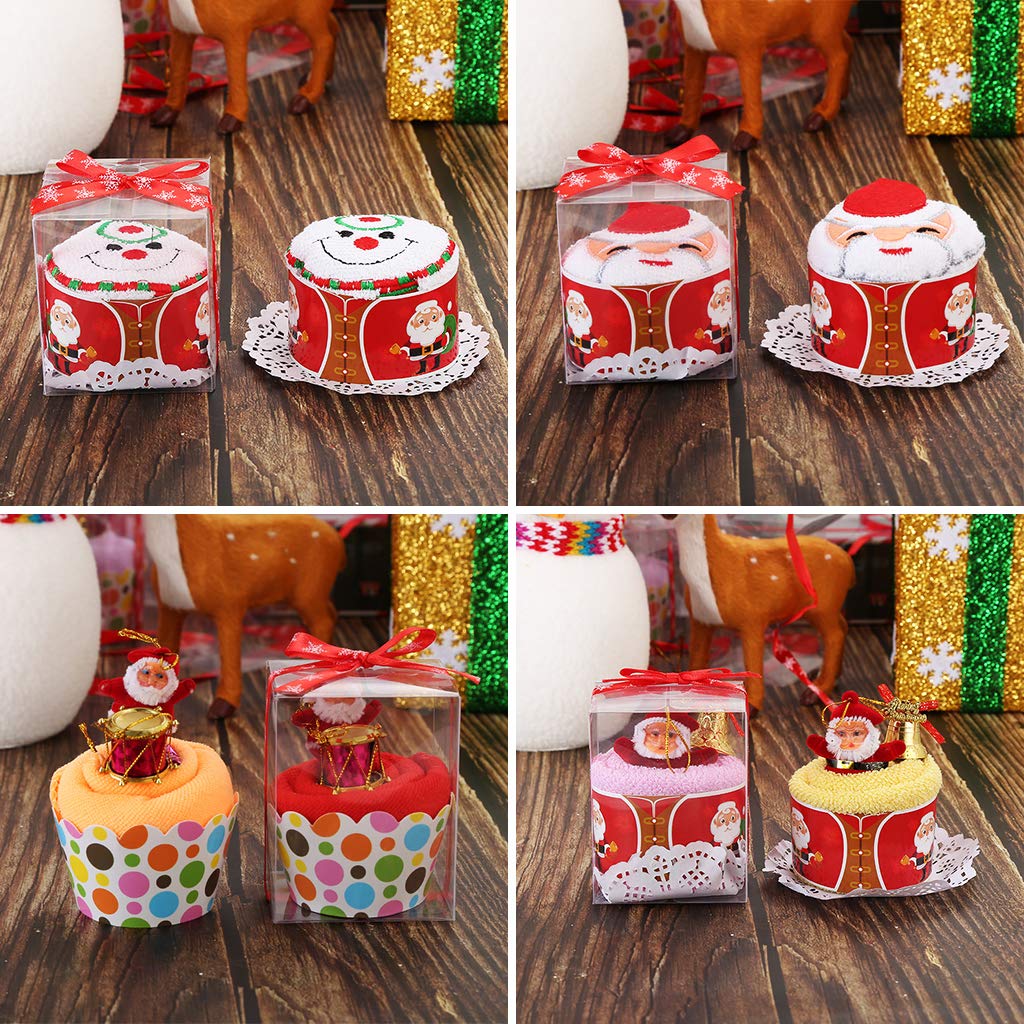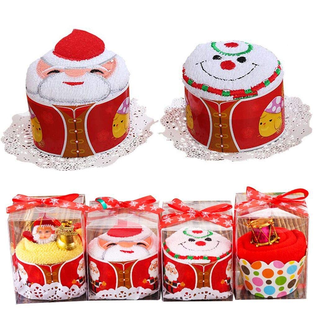 クリスマスボンゴ:繊維;クリスマスの鐘、雪だるま、サンタクロース:綿;両面タオル地,上質な素材、柔らかく快適な、安全で衛生的。パッケージサイズ:(約)横7cm×高さ9cm,タオルハンカチ:(約)30cm×30cm,6個セット,ランダムスタイル。